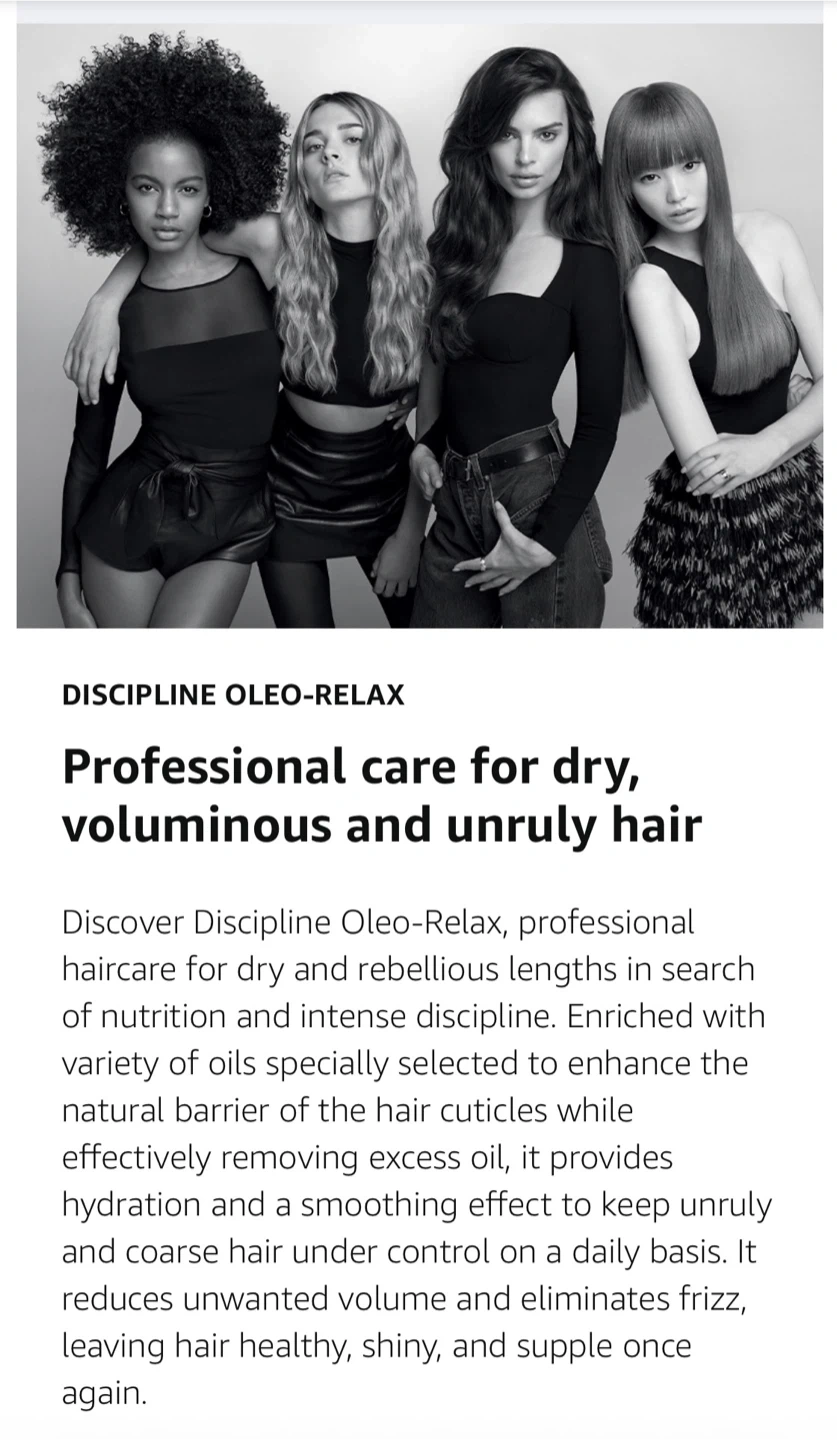 Authentic Kérastase Paris Discipline Oléo-Relax Masque, designed to smooth, control frizz, and tame dry, voluminous, and unruly hair. Leaves hair sleek, shiny, and protected from humidity.