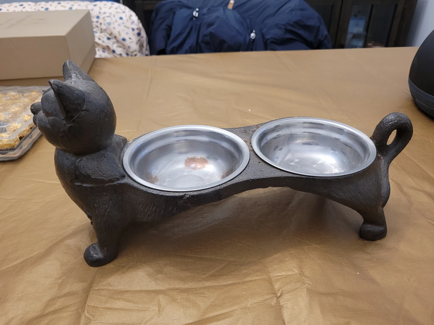 Buy & SellCast Iron Cat Double Pet BowlCast Iron Cat Double Pet Bowl$32Great condition Minor discoloring on one of the stainless steel bowls WHERE TO MEETCheck LocationView MapSELLERverifiedJasmine zhangNewmarket Clearmeadow650 reviews0 chats·2 favorites·13 viewsSEND CHAT TO SELLERHi Jasmine zhang! I’m interested in your listing.Hi Jasmine zhang! I’m interested in your listing.Get the Karrot app to chatSign In to chat