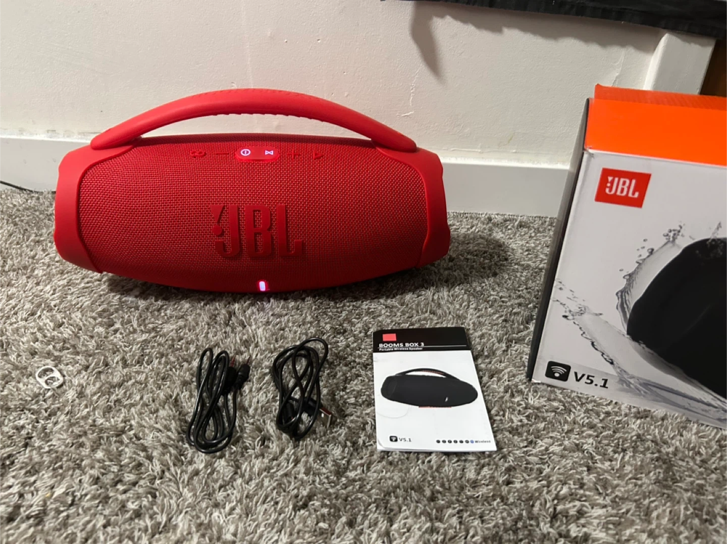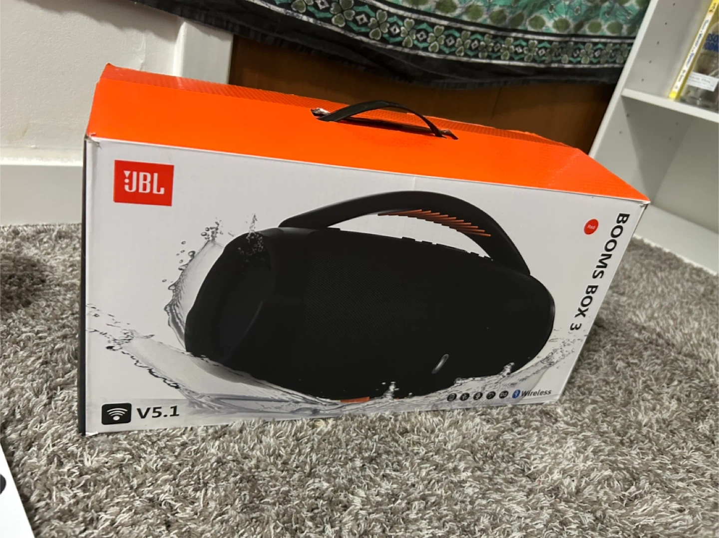 Selling a JBL Boombox 3! It's a super powerful and portable Bluetooth speaker.