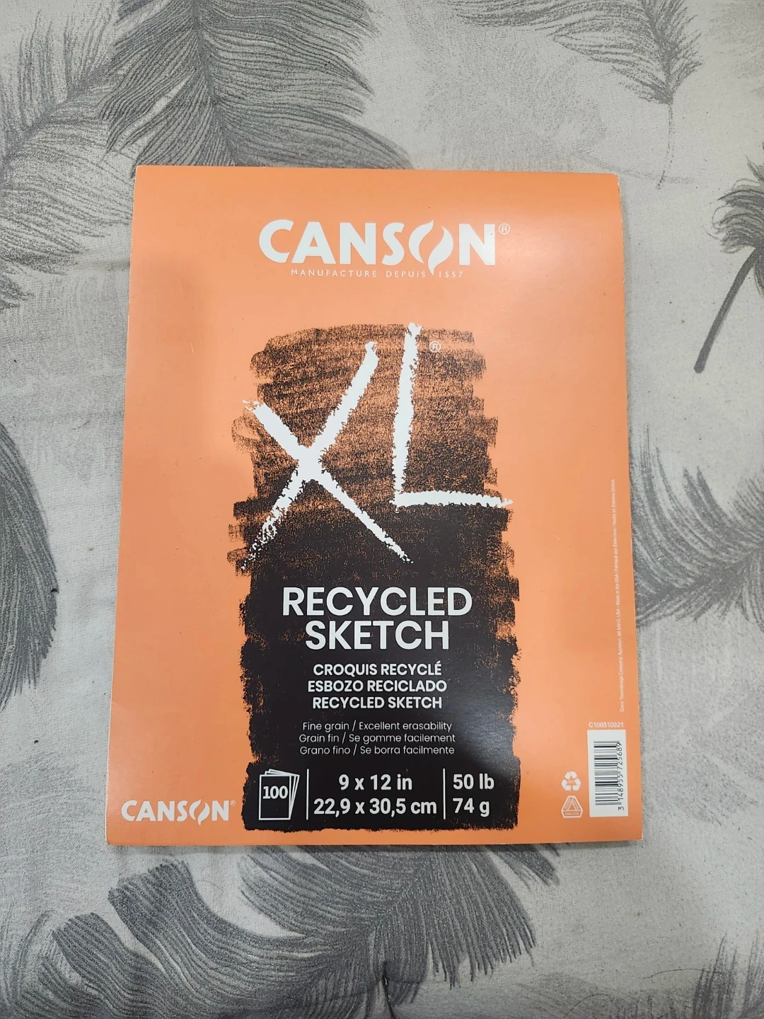 Selling a Canson XL Recycled Sketch pad. It has 100 sheets of fine grain paper, perfect for sketching! The pad measures 9 x 12 inches (22.9 x 30.5 cm) and the paper weight is 50 lb (74 g).