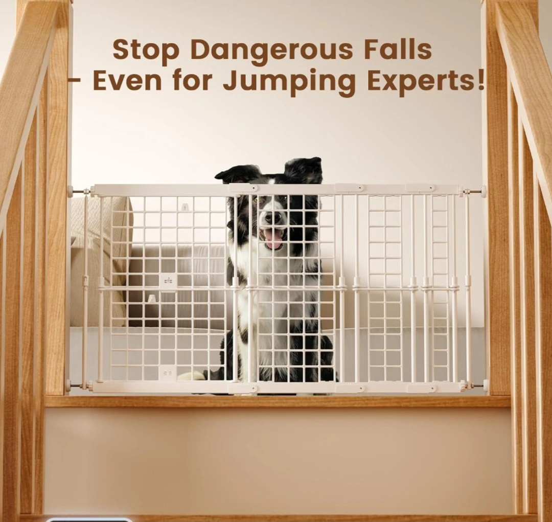 Selling a brand new....Fldofaves height-adjustable pet gate. It's white and looks like it's in great condition! It fits 95% of homes, so no custom orders are needed. It also helps to stop dangerous falls, even for jumping experts!