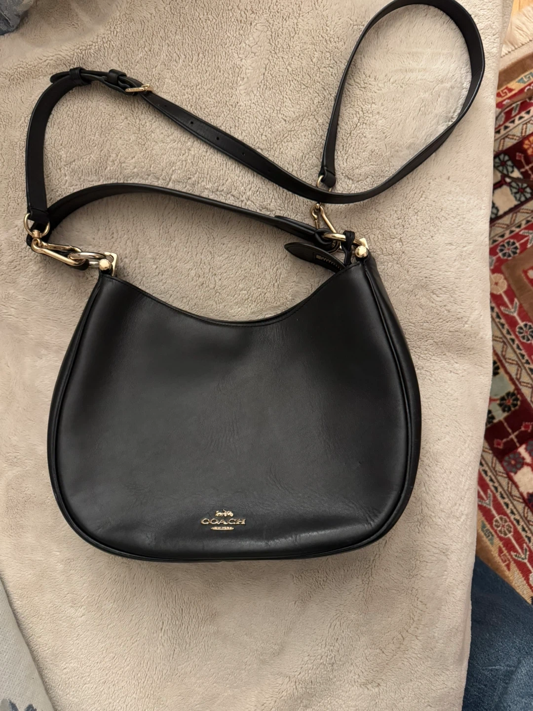 Selling a Coach black leather shoulder bag. It's in great condition and perfect for everyday use! The bag features a classic design with a comfortable shoulder strap. Feel free to reach out if you have any questions!