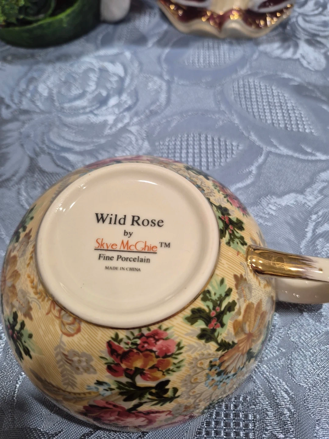Selling a charming Wild Rose teapot and cup set by Skye McGhie. This fine porcelain set features a beautiful floral design. Perfect for tea lovers or as a decorative piece!
