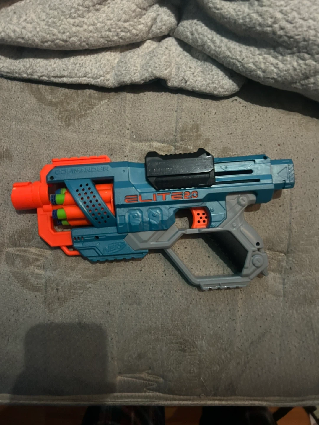 Selling a Nerf Elite 2.0 Commander RD-6 blaster! It's in great shape and ready for some action-packed fun. This blaster features a 6-dart rotating drum so you can fire 6 darts in a row. Load the darts, prime, and fire!