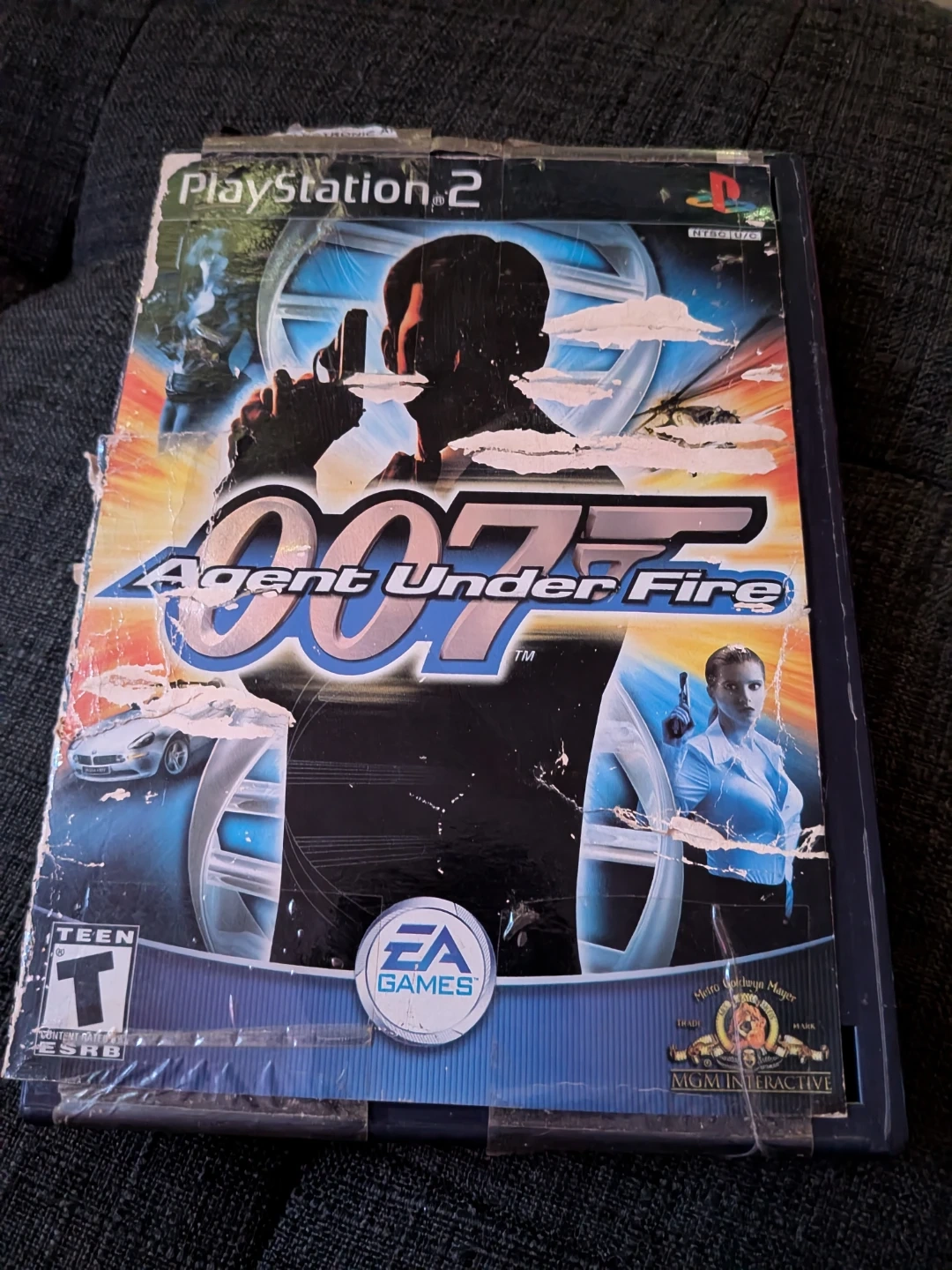 Selling James Bond 007 Agent Under Fire for PlayStation 2. The game is rated T for Teen. The case has some wear and tear, but the disc is in good condition and plays perfectly