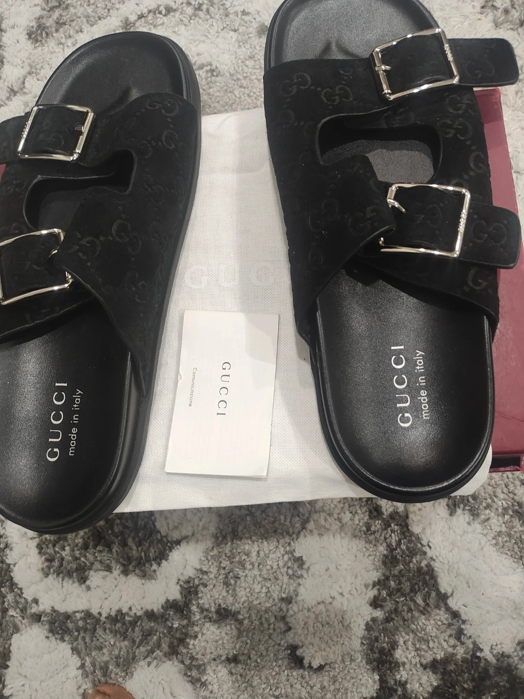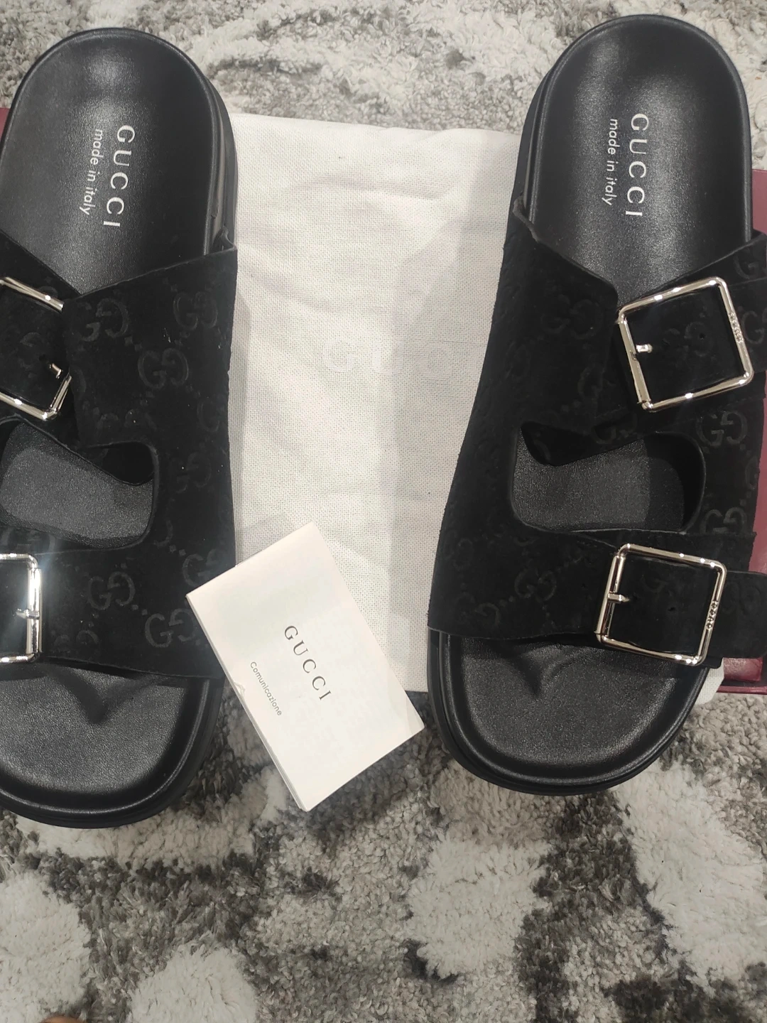 Buy & SellGucci Slides - BlackGucci Slides - Black$299Selling a pair of Gucci slides in black. They are in great condition and come with the original box and dust bag! Perfect for summer or just lounging around the houseBrandGucciWHERE TO MEET1027 Freeman TrailView MapSELLERverifiedRuthBristol21114 reviews0 chats·1 favorites·30 viewsSEND CHAT TO SELLERHi Ruth! I’m interested in your listing.Hi Ruth! I’m interested in your listing.Get the Karrot app to chatSign In to chat
