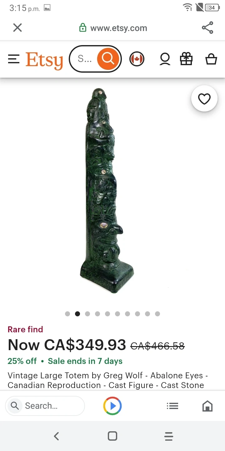 Selling a vintage large totem by Greg Wolf with abalone eyes. It's a Canadian reproduction cast figure made of cast stone. I saw it listed for $349.93!