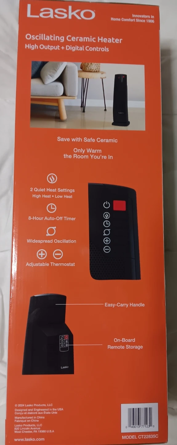 Selling a Lasko Oscillating Ceramic Heater in excellent condition! It comes in the original box. Here are some of its features: