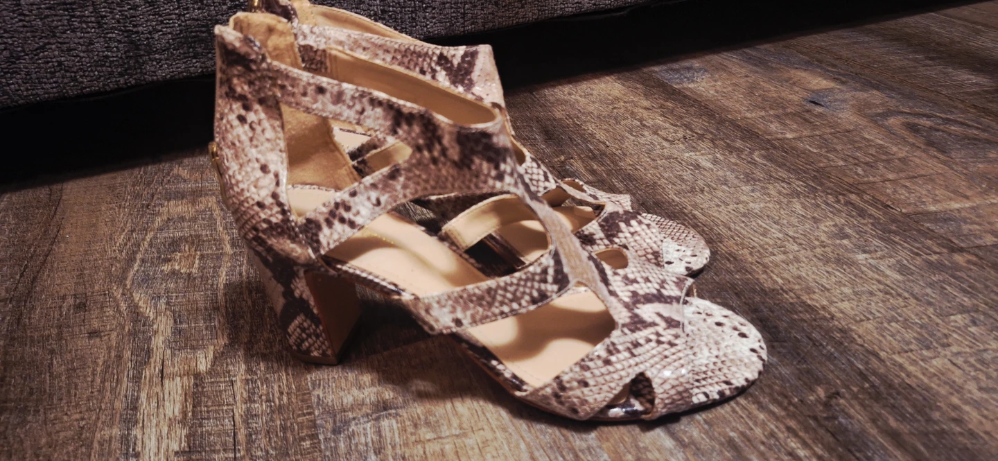 LUCA FERRI Snakeskin Print Heels, Size 9