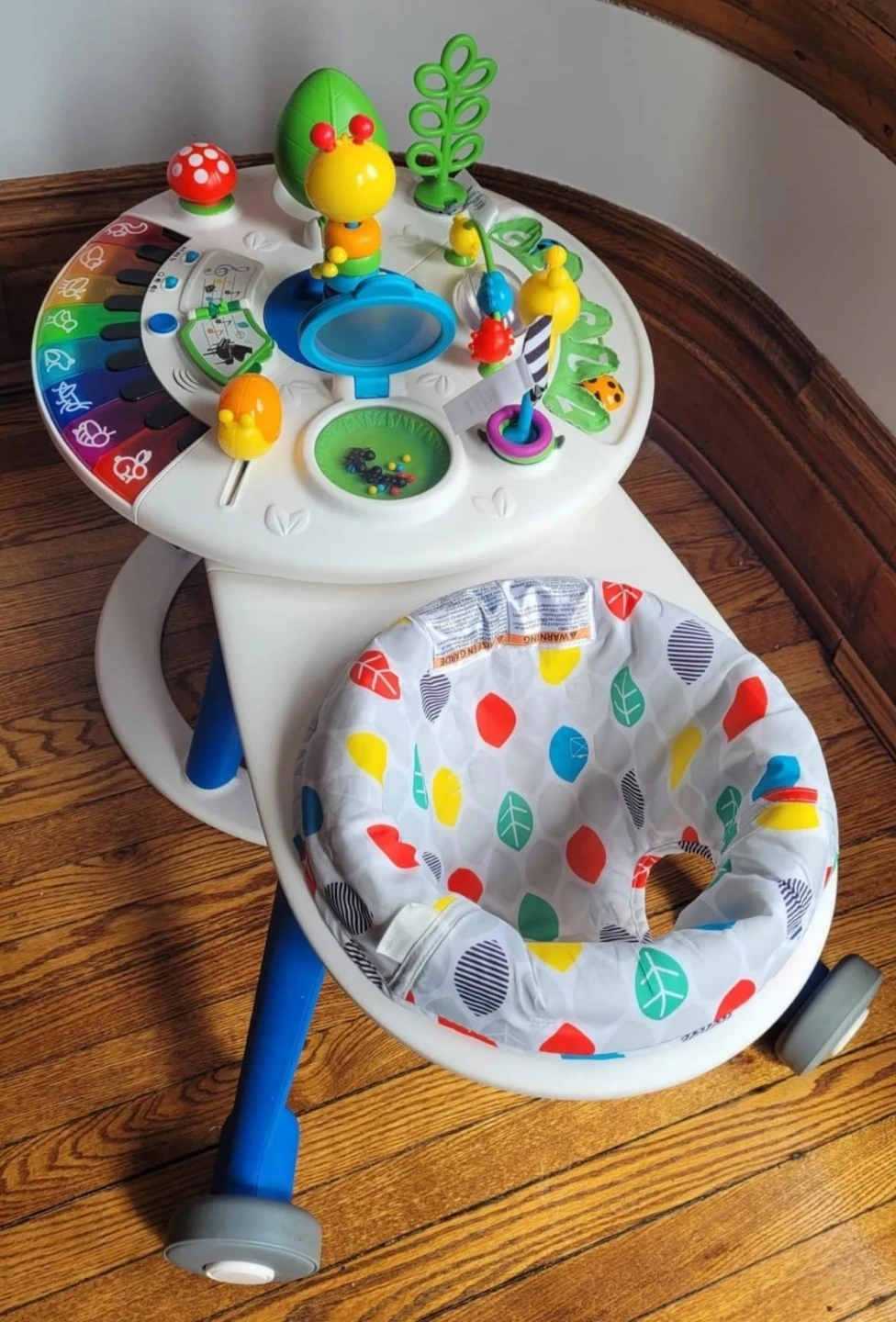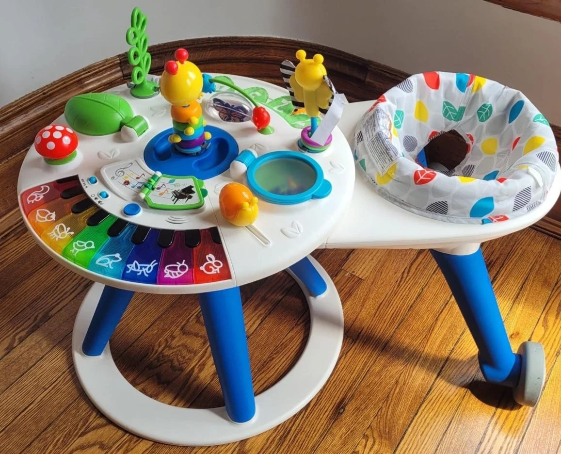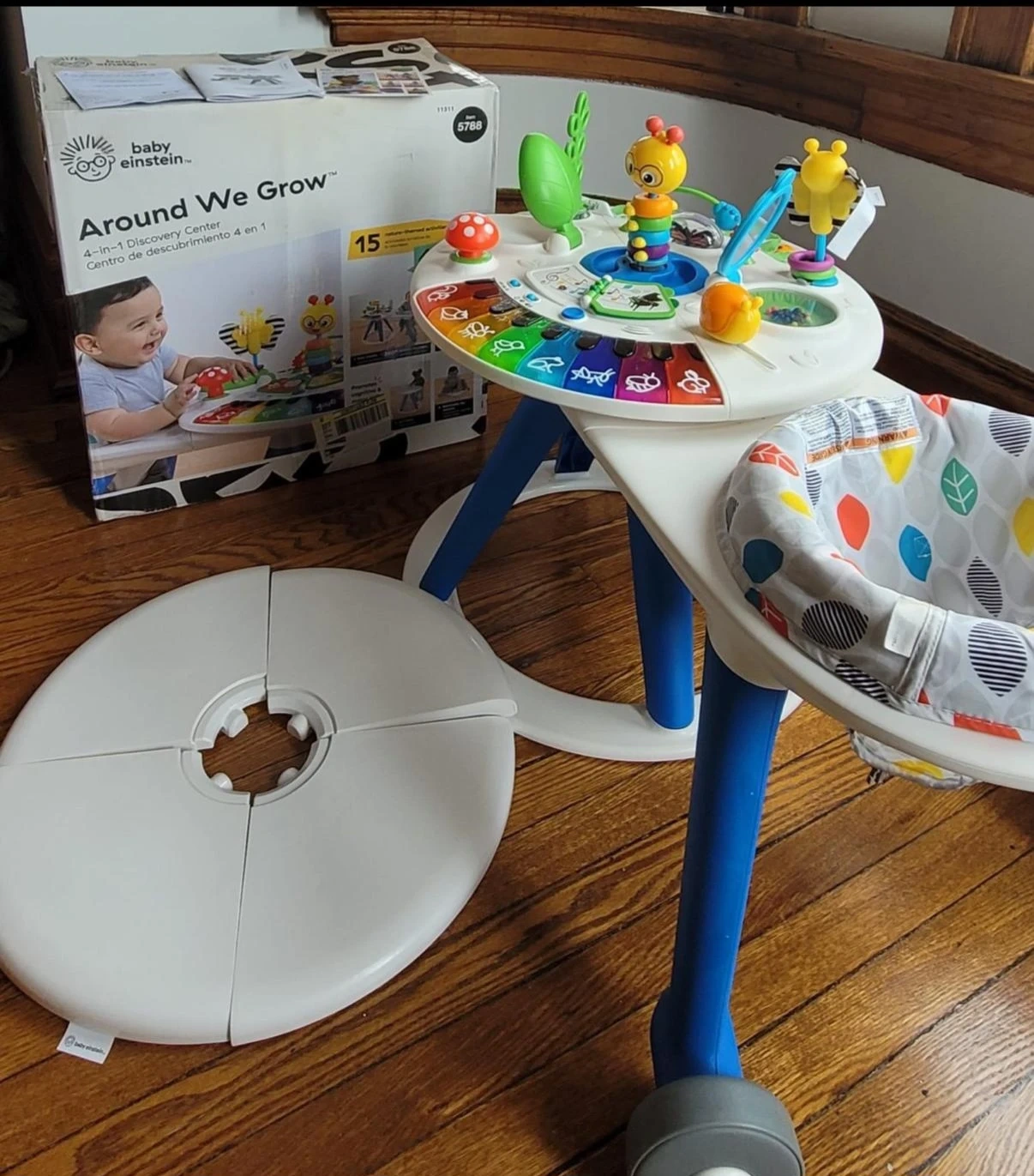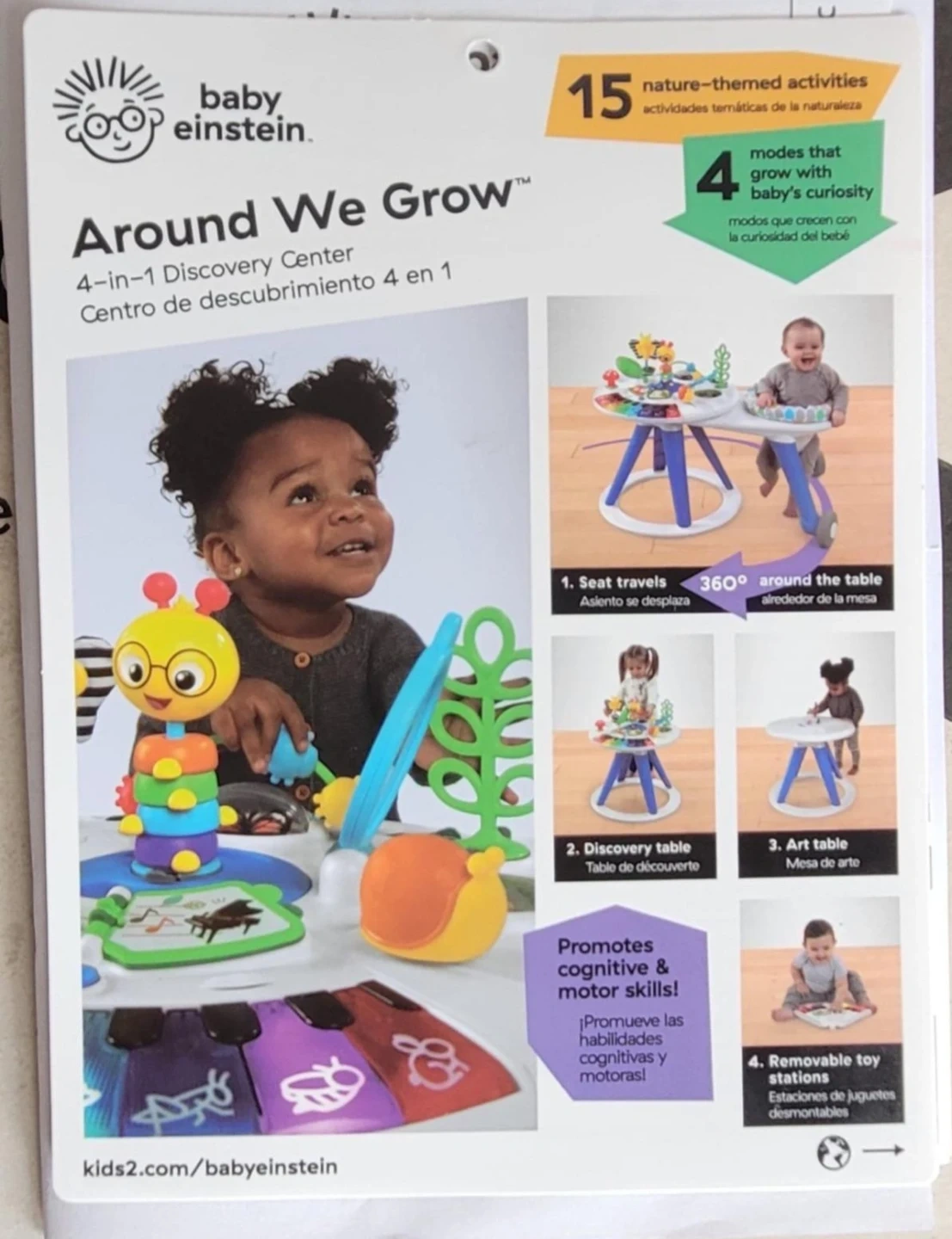 Selling a Baby Einstein Around We Grow 4-in-1 Discovery Center! It features 15 nature-themed activities and 4 modes that grow with baby's curiosity. It can be used as a seat that travels 360 degrees around the table, a discovery table, an art table, and has removable toy stations. It also promotes cognitive and motor skills! The box is included