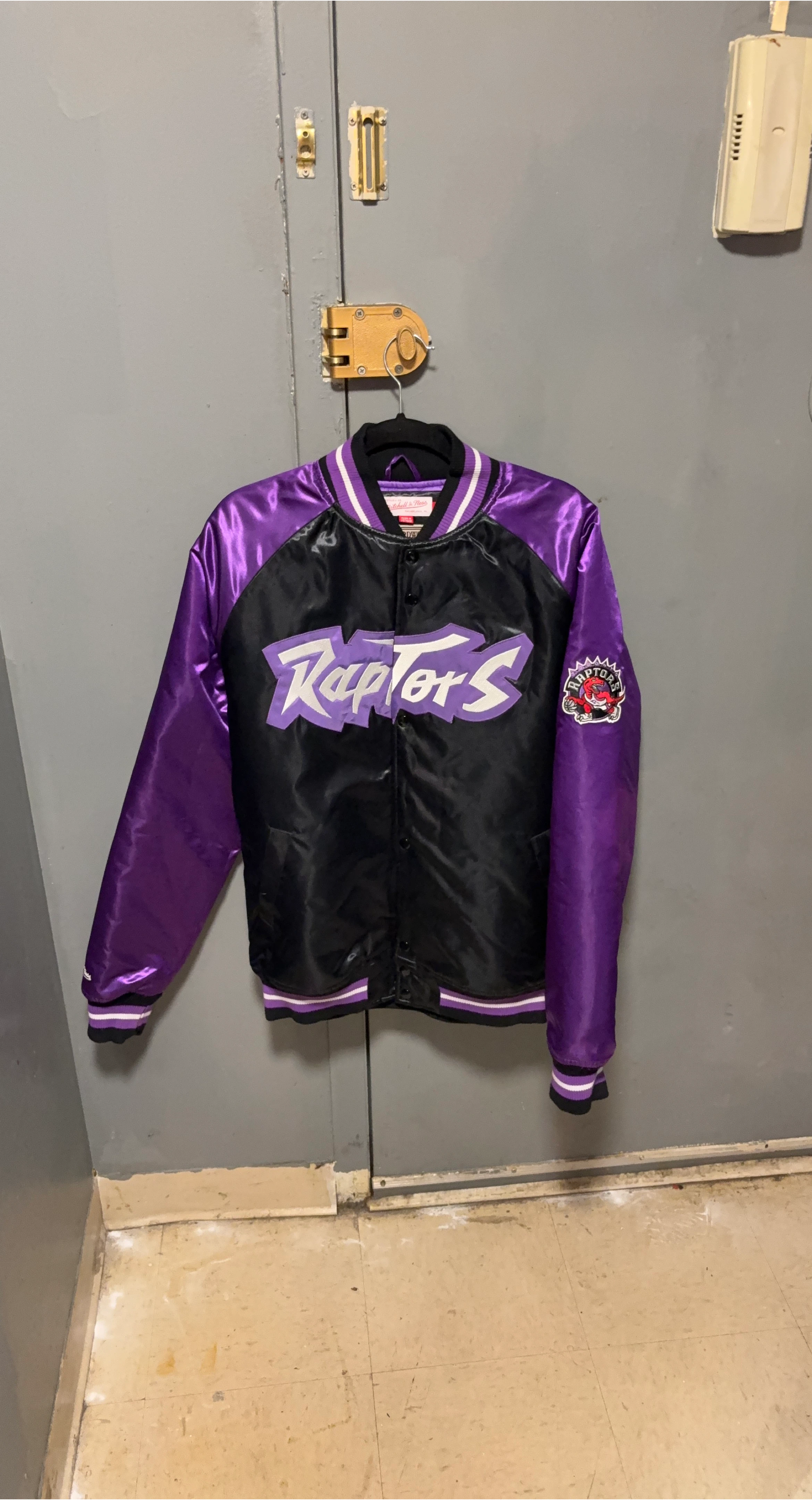 Selling a Mitchell & Ness Toronto Raptors jacket! It's in great condition and features the team's logo. The jacket has a cool purple and black color scheme.