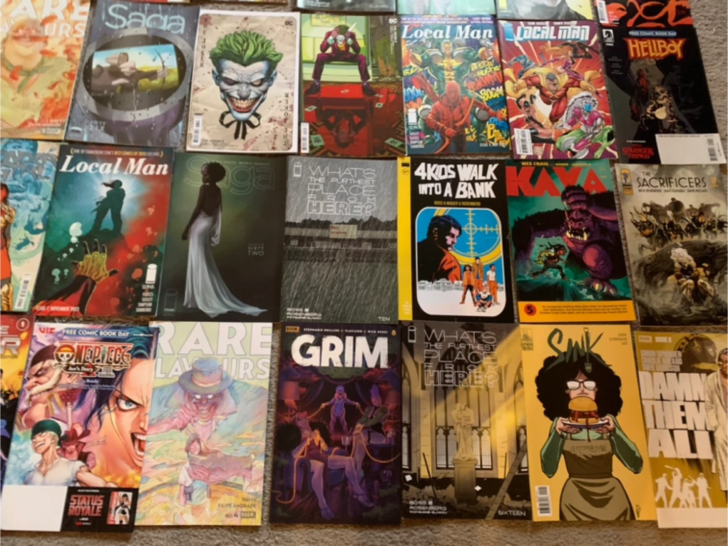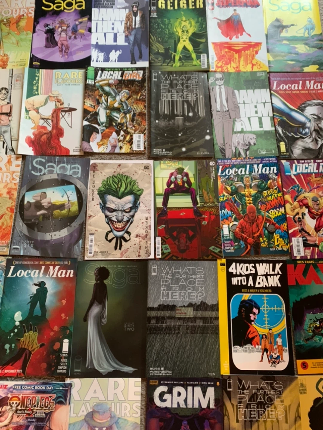 Selling a collection of comic books, including titles from DC (like The Joker), Saga, Local Man, and other various series! A great opportunity to expand your comic collection or start a new one.