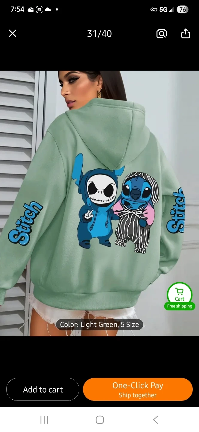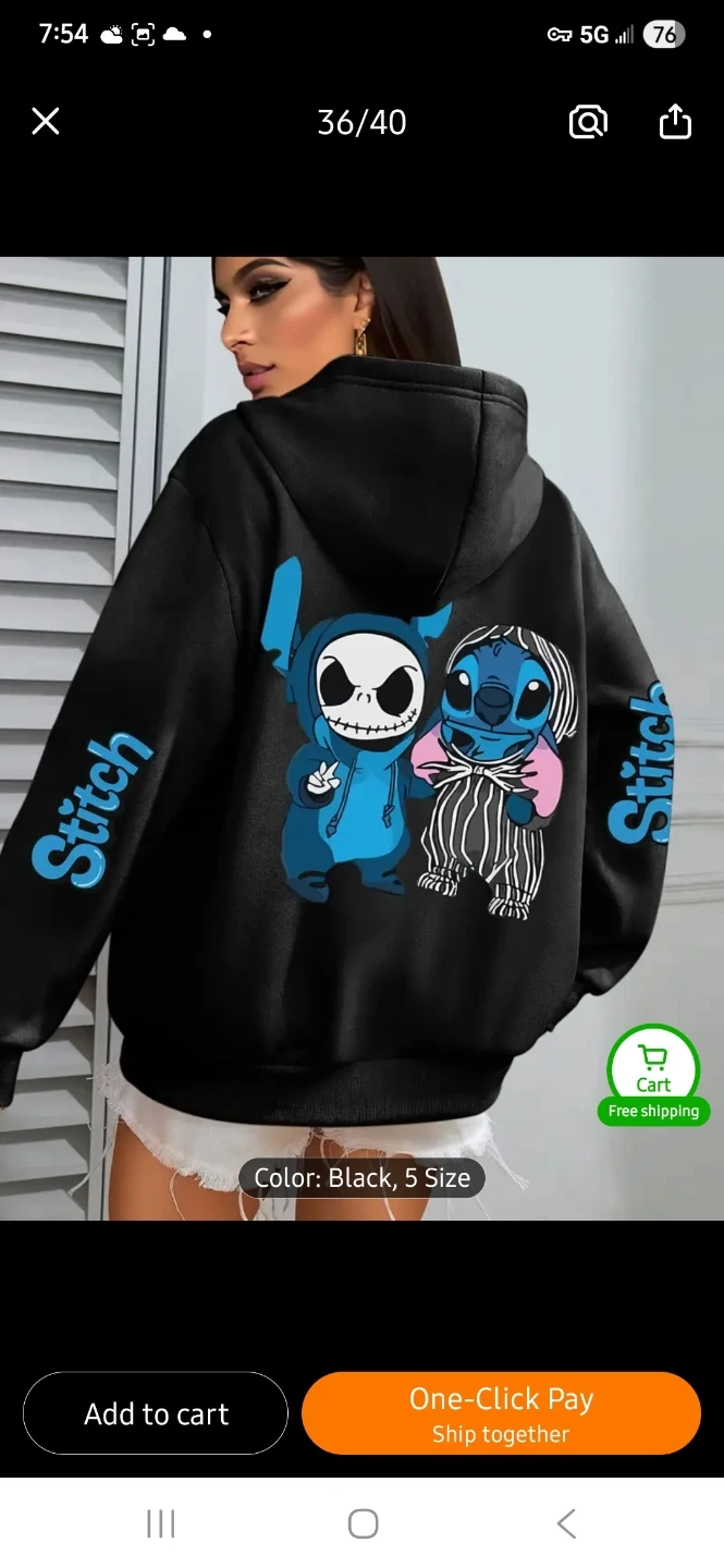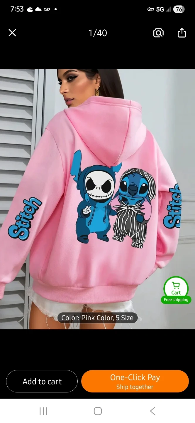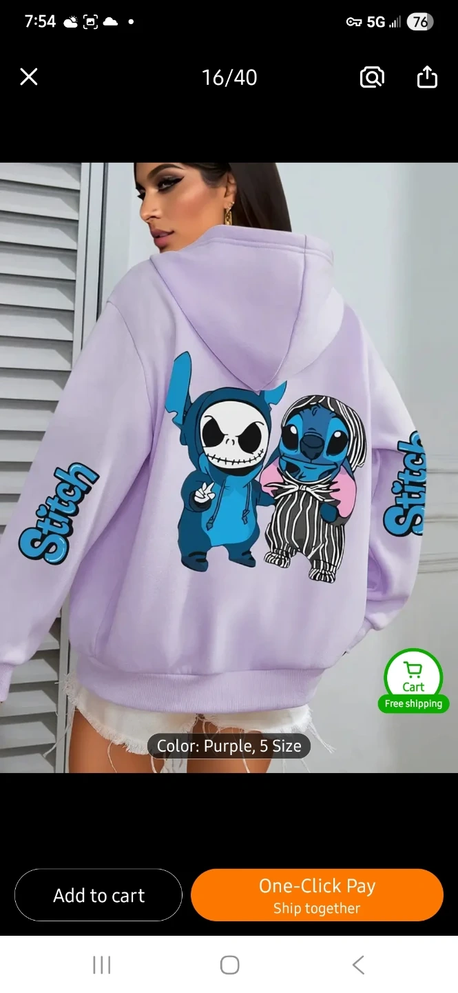 Cute XL sizes Stitch and Jack graphic hoodie! Available in pink, grey, purple, green and black colours. Perfect for any Disney fan!