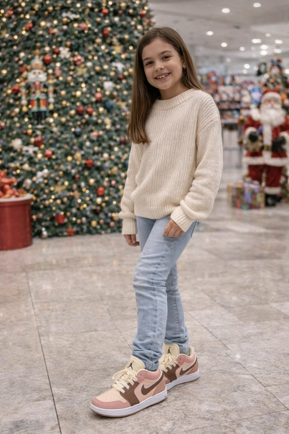 Step up your child’s style with these beautiful Nike Air Jordan Low sneakers, designed for kids and youth. Featuring a soft and trendy pink, cream, and brown colorway, these sneakers are perfect for everyday wear while keeping that iconic Jordan look.