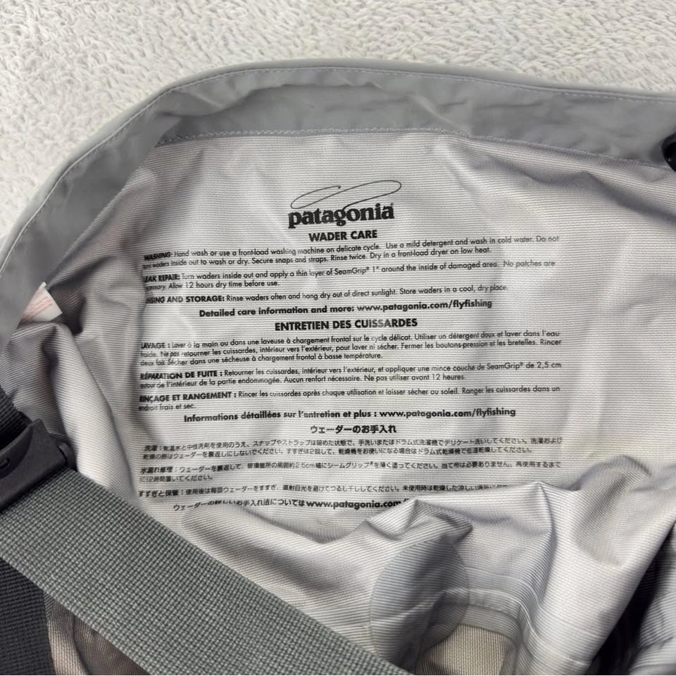 Patagonia NWT Men's Size Large Short Rio Gallegos Fishing Waders 82800 Style in brand new condition as shown in the photos with some residue from sitting in storage as shown in the inner front legs. Brand new in bag with original box but the original box has some damage in one corner.