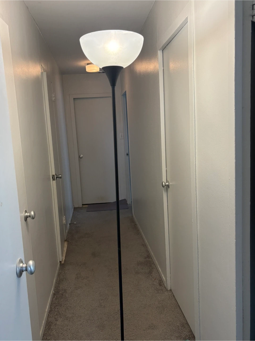 Selling a standing floor lamp. It has a white shade and a black stand. Great for adding some extra light to any room!