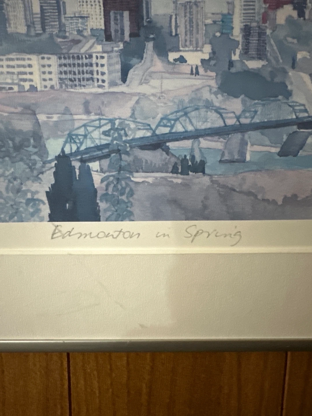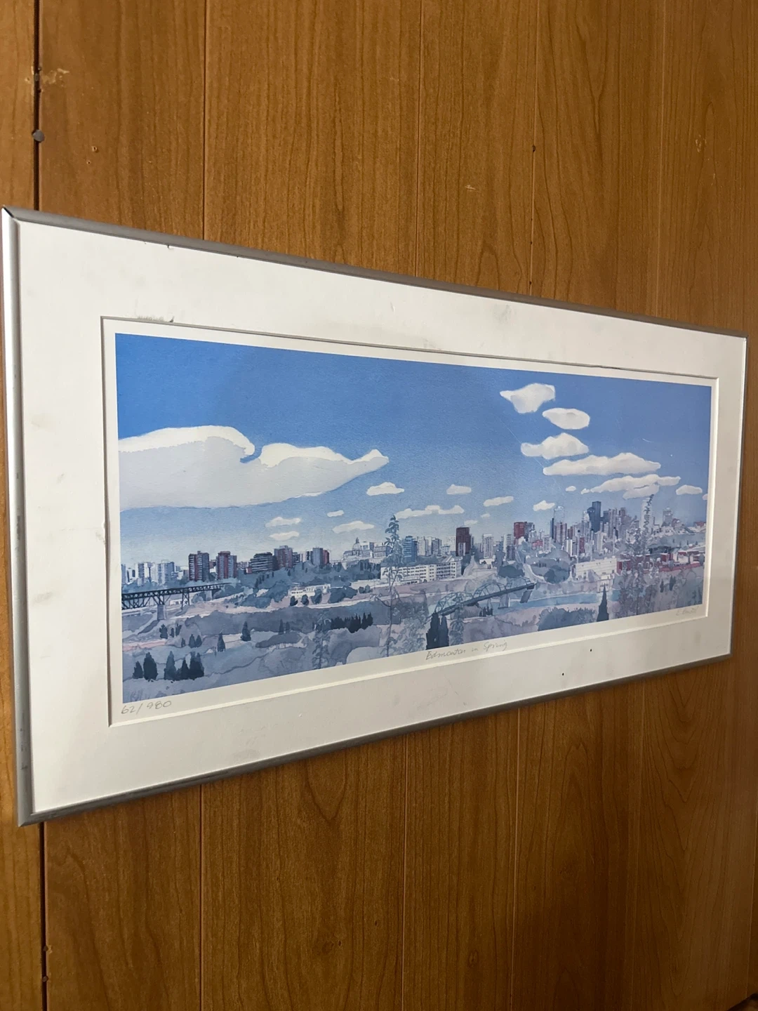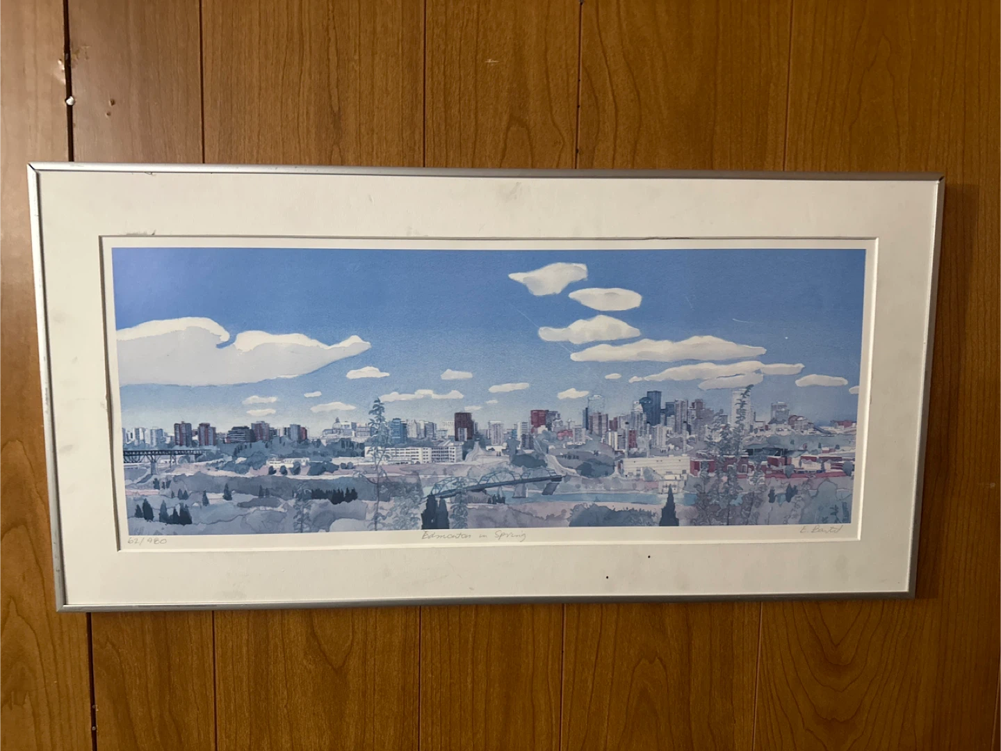Framed print titled "Edmonton in Spring" by E. Bartel. It's number 62 out of 980 prints.