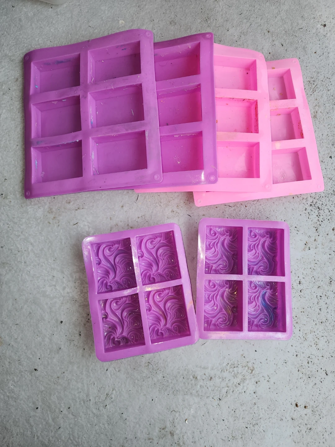 Selling a set of silicone soap molds! There are a couple of different styles and colours, including pink and purple. They are in good condition with superficial marks and ready for your next DIY project