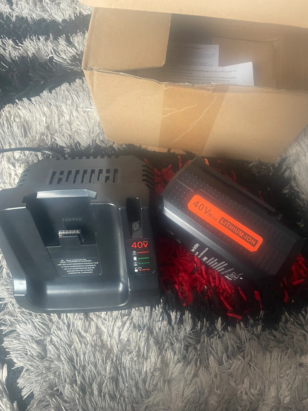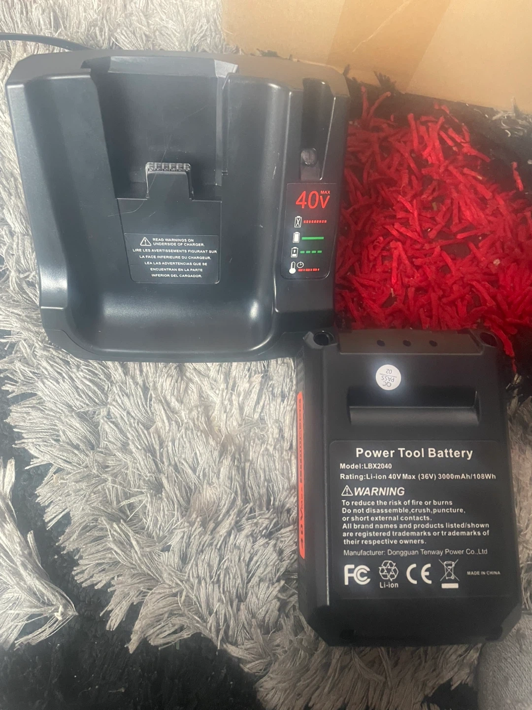 Selling a 40V power tool battery and charger. The battery is a Li-ion 40V Max (36V) 3000mAh/108Wh. Comes with the original box