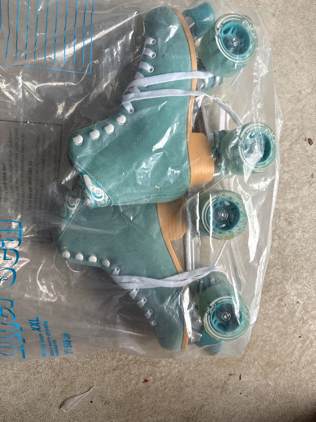 Selling a pair of Candi Girl roller skates in a lovely teal colour! They're still in the original packaging. Perfect for some fun at the roller rink or cruising around the neighbourhood (size 5)