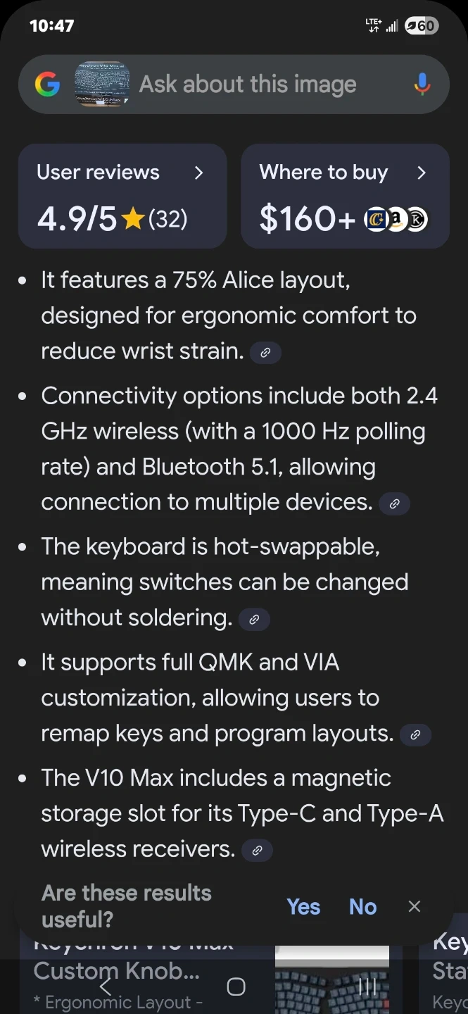 Selling a Keychron V10 Max 75% Alice Hotswap Wireless Keyboard! It features a 75% Alice layout, designed for ergonomic comfort to reduce wrist strain. Connectivity options include both 2.4 GHz wireless and Bluetooth 5.1. The keyboard is hot-swappable, meaning switches can be changed without soldering. It also supports full QMK and VIA customization. The V10 Max includes a magnetic storage slot for its Type-C and Type-A wireless receivers. Comes with the original box!