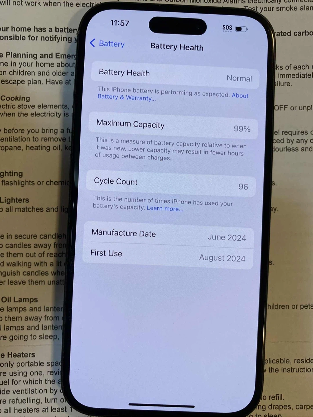 Selling my used like new iPhone 15 with 128GB of storage in black. The phone is in good condition. Battery Percentage is 99% battery cycle Count is 96 which’s hard to find Phone Like this This phone is almost New Condition for this Cycle Count