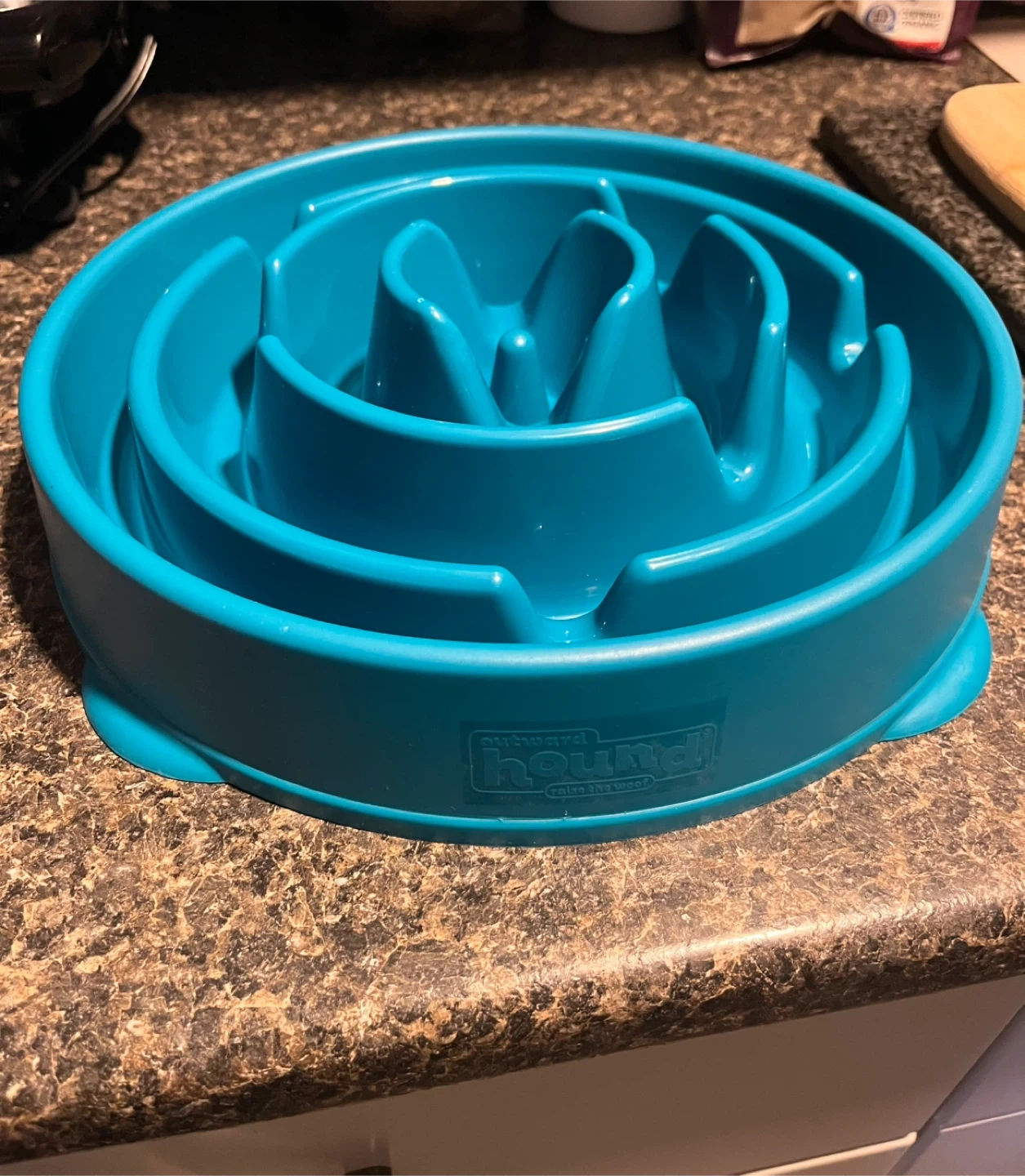 Large size. Great quality and works well if you want your pup to eat slower. Never used.