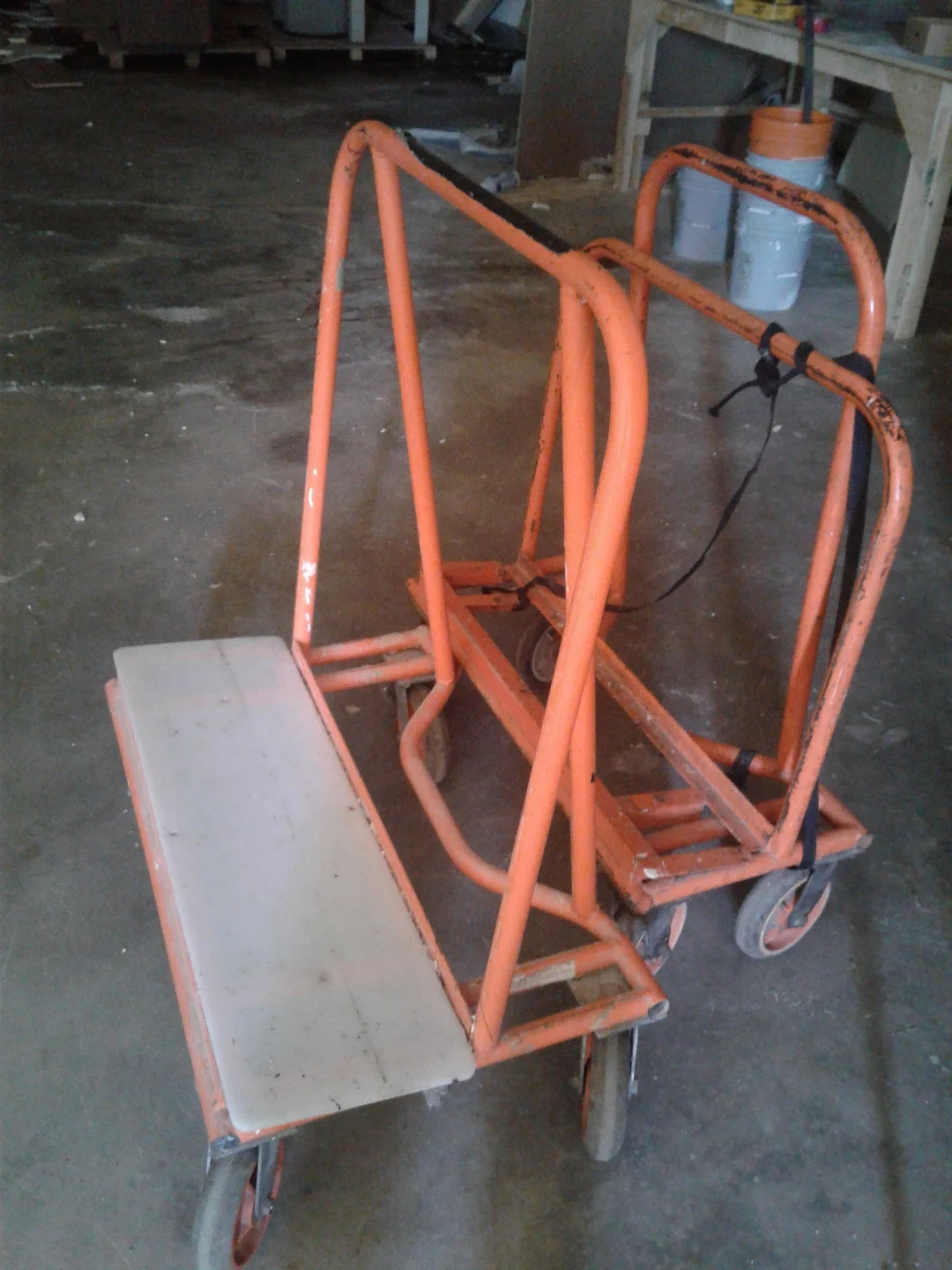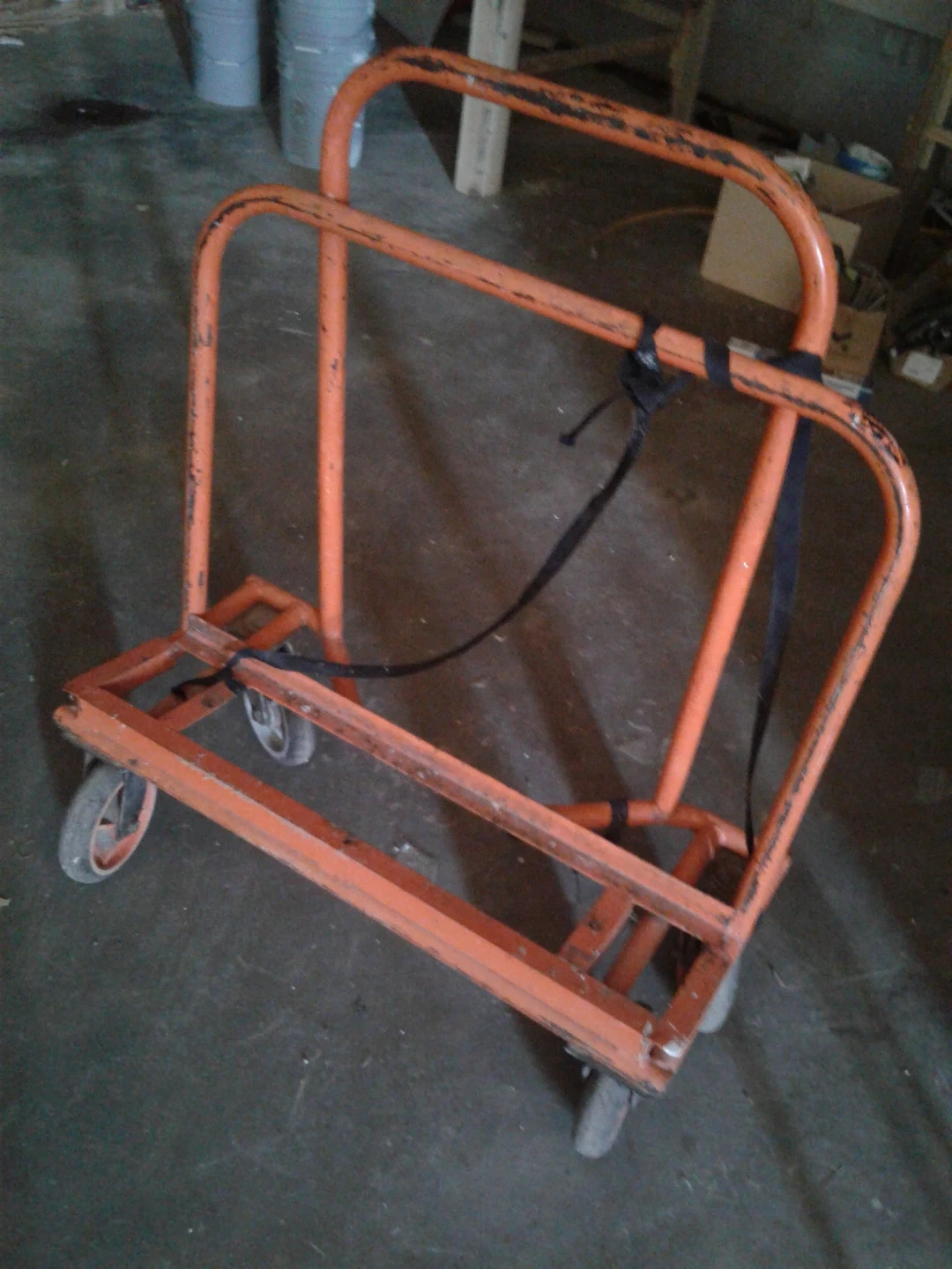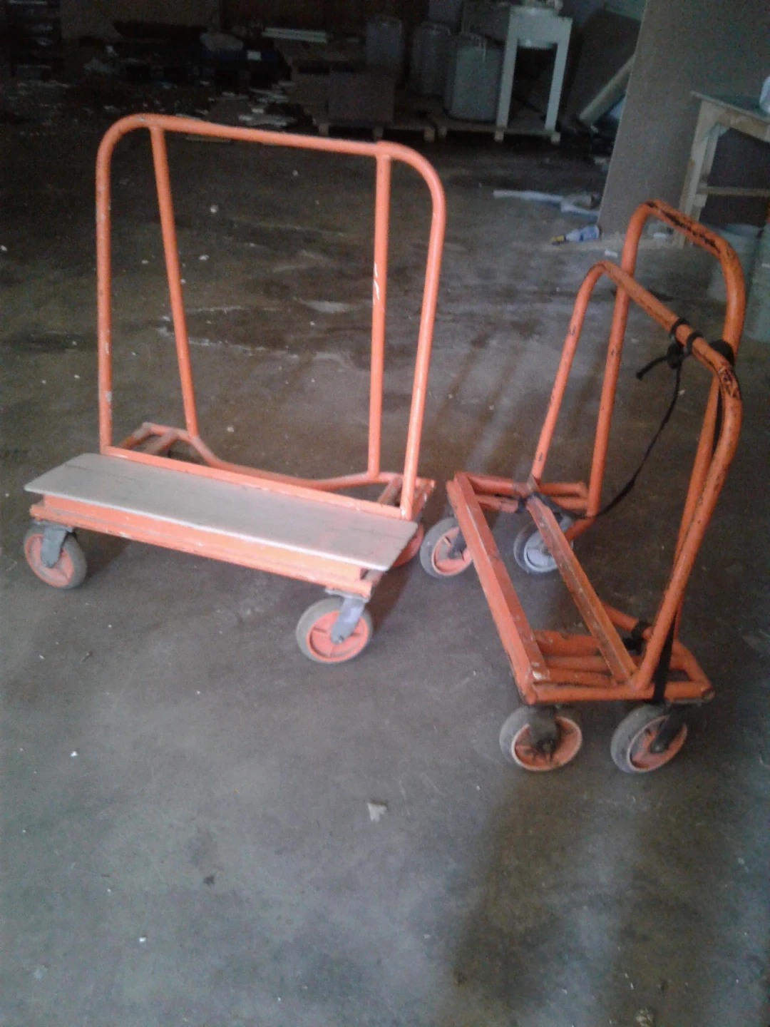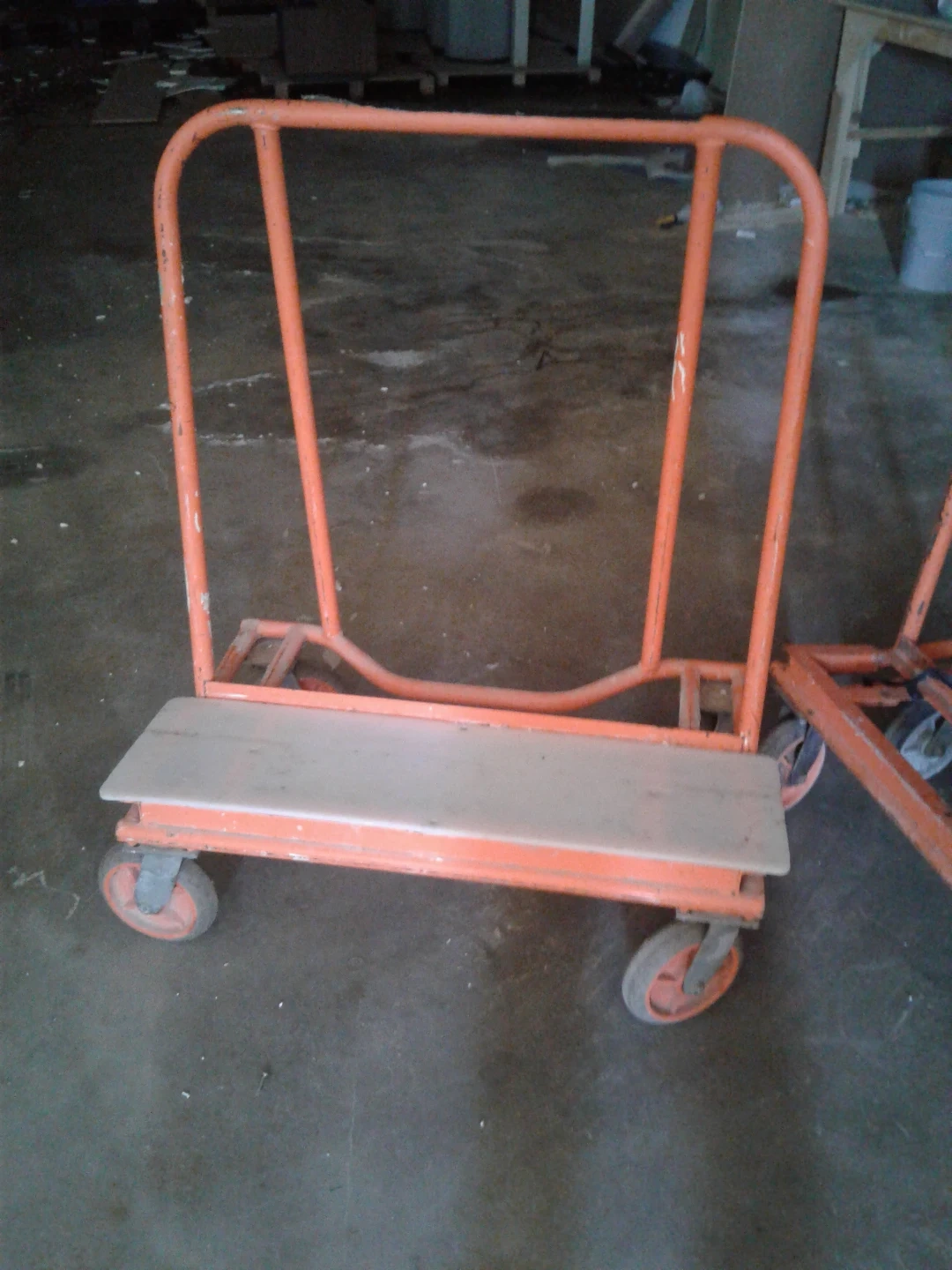 Selling a 2 used orange drywall cart. It's showing signs of wear and use, but still works great for moving drywall or other heavy materials! Perfect for your next reno project