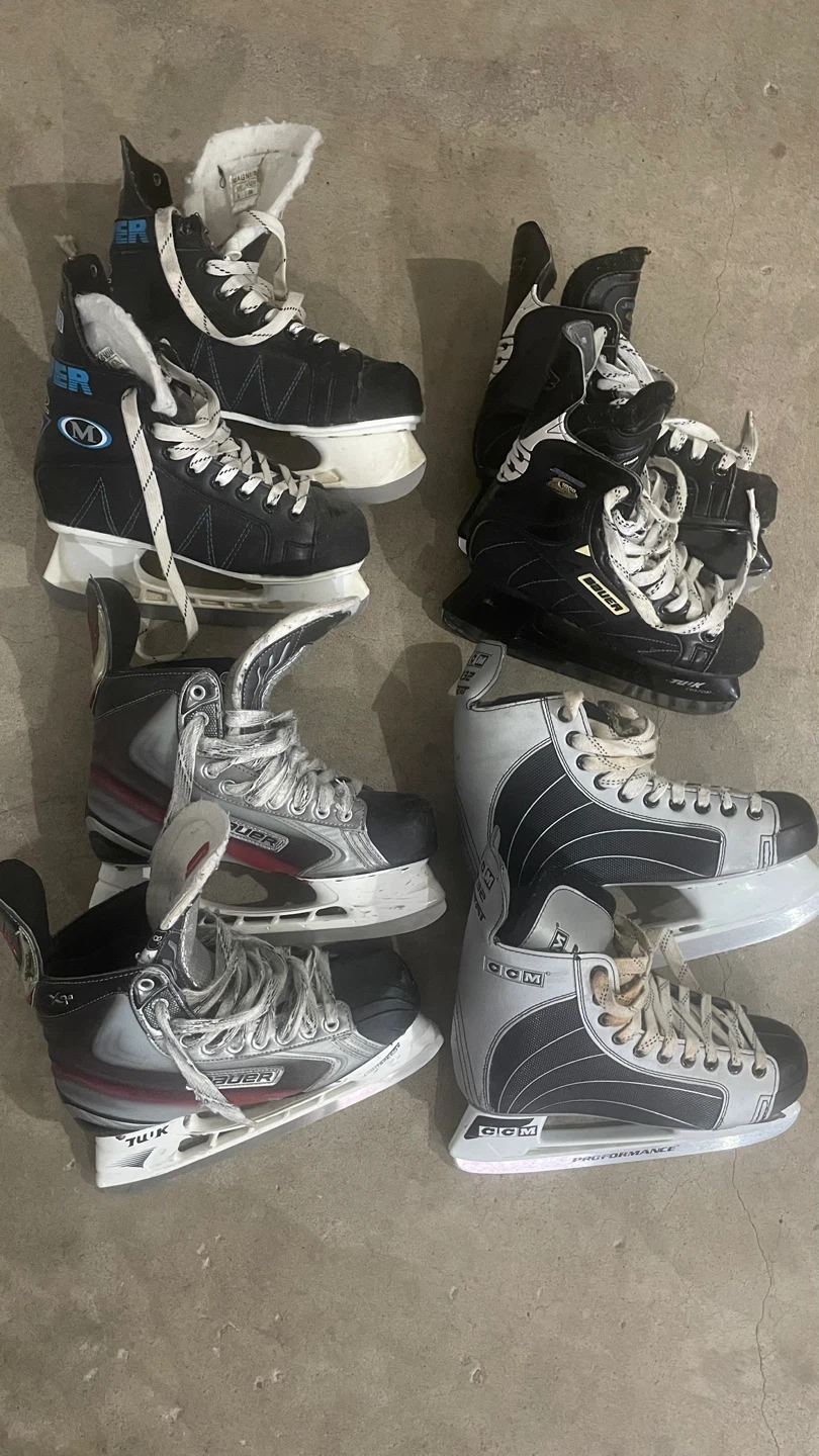 Selling a collection of used hockey skates. There are Bauer and CCM skates. Please take a look at the pictures to see the condition of each pair!