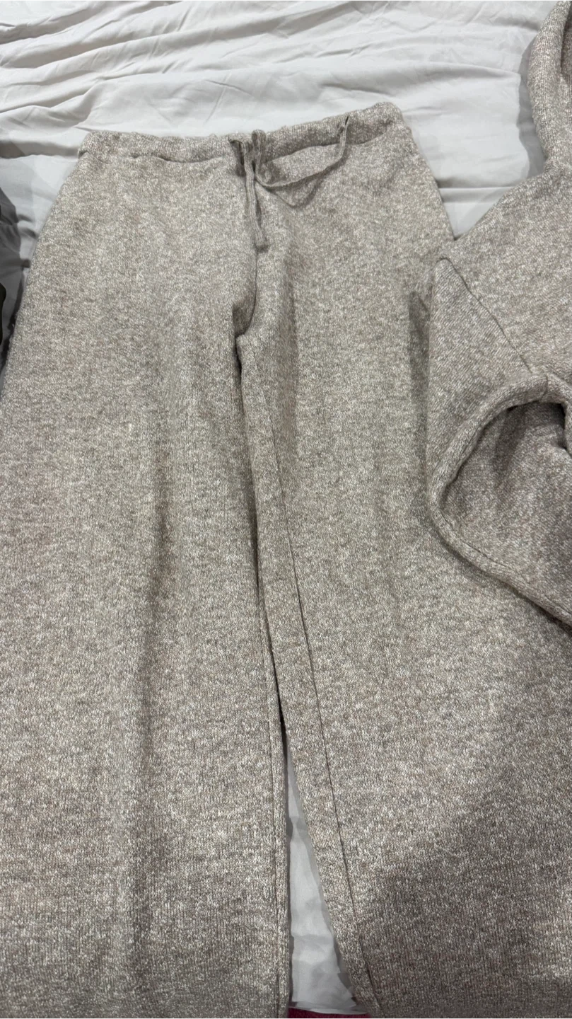 Selling a comfy matching knit set in size M. The set includes a hoodie and pants, perfect for lounging or casual wear. The material is soft and cozy, great for cooler weather
