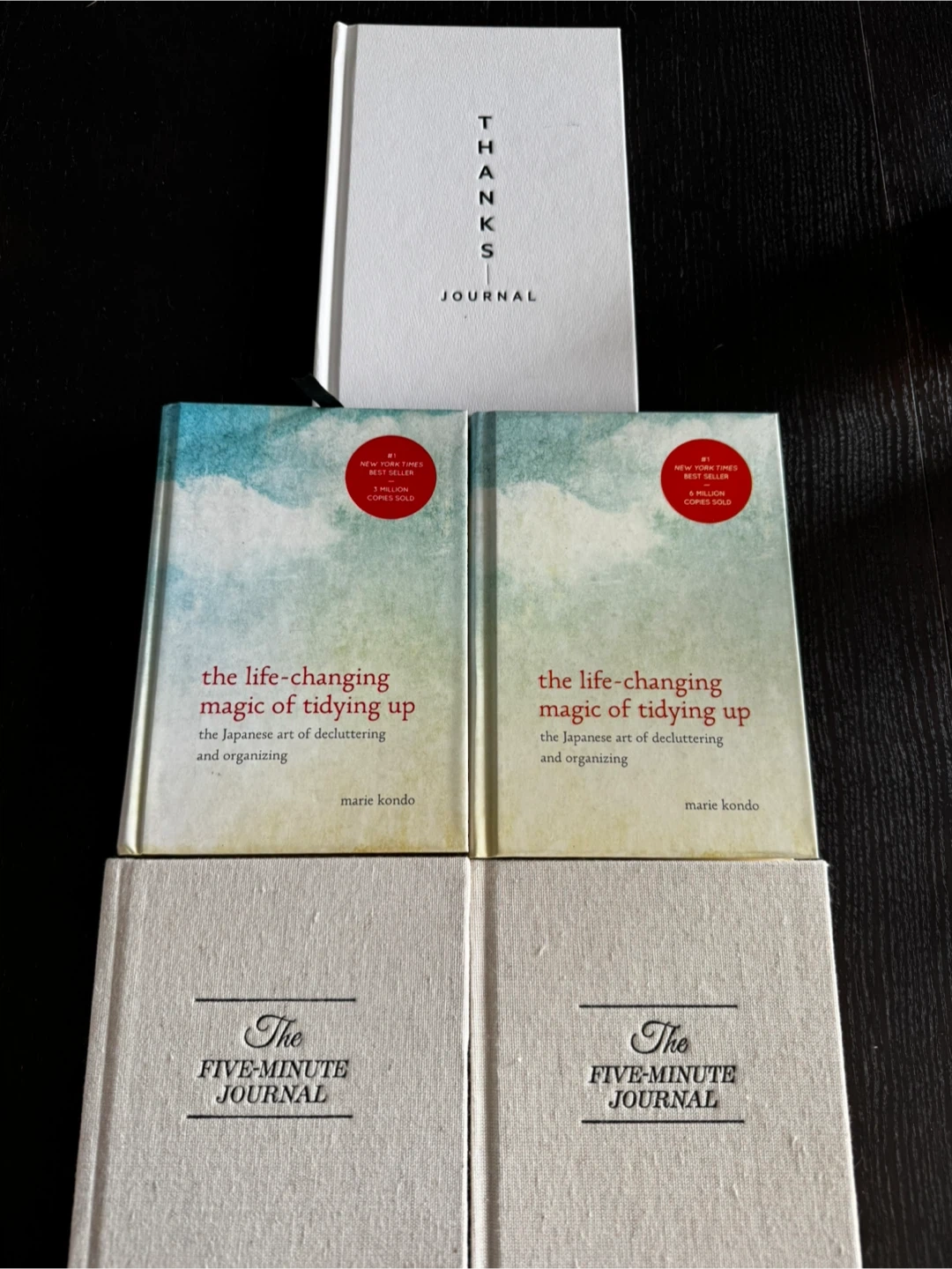 $10 each: Thanks Journal, Mari Kondo; $10 Five Minute Journal