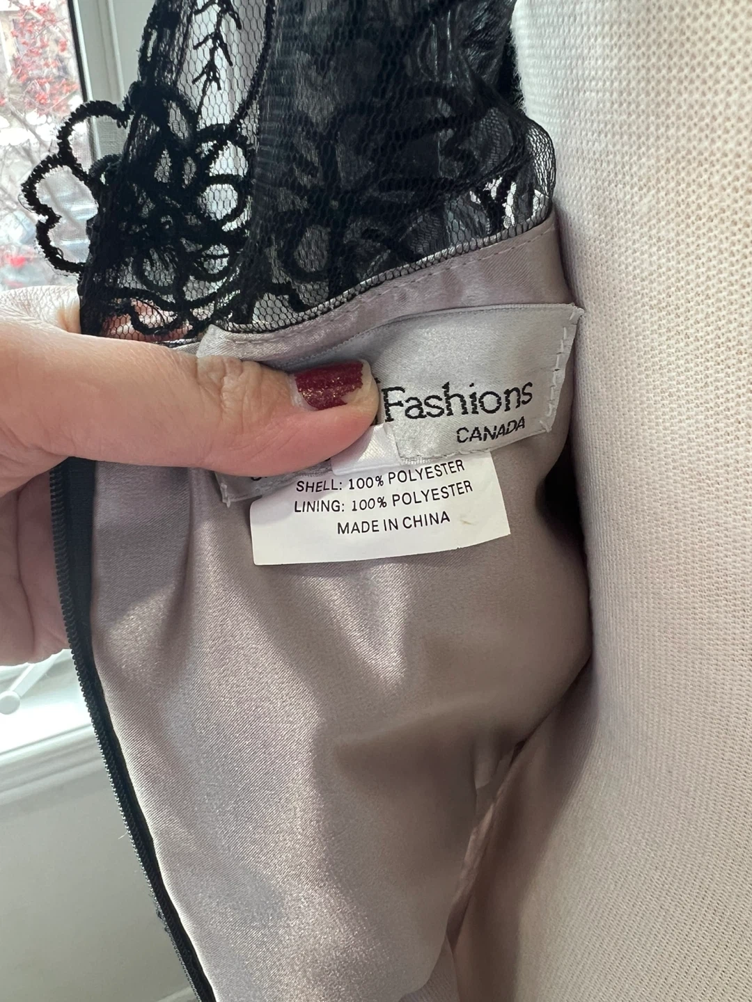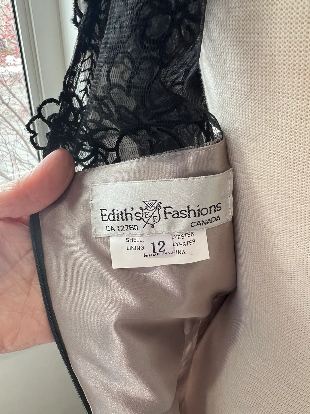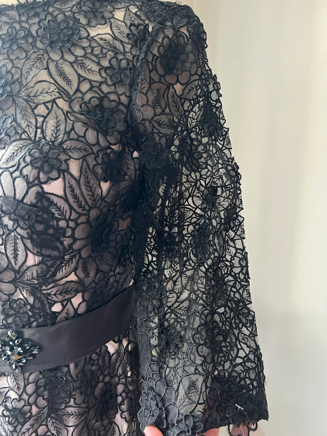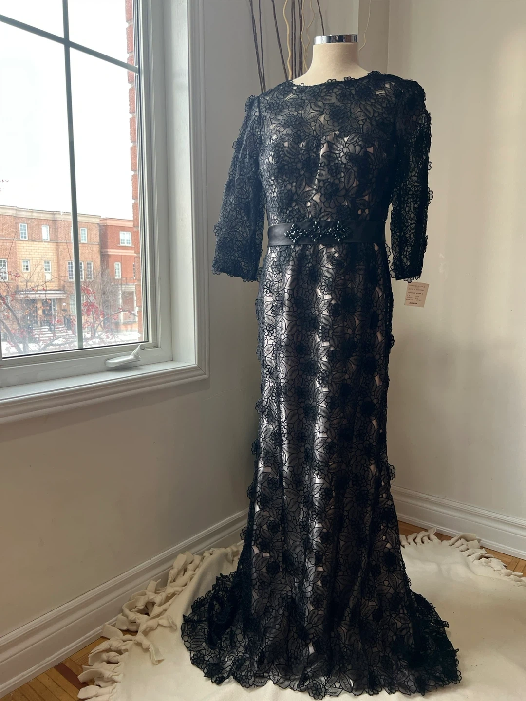 Selling a beautiful black lace formal dress. It features a delicate floral lace overlay and a flattering silhouette. Perfect for a special occasion! Original price $1399