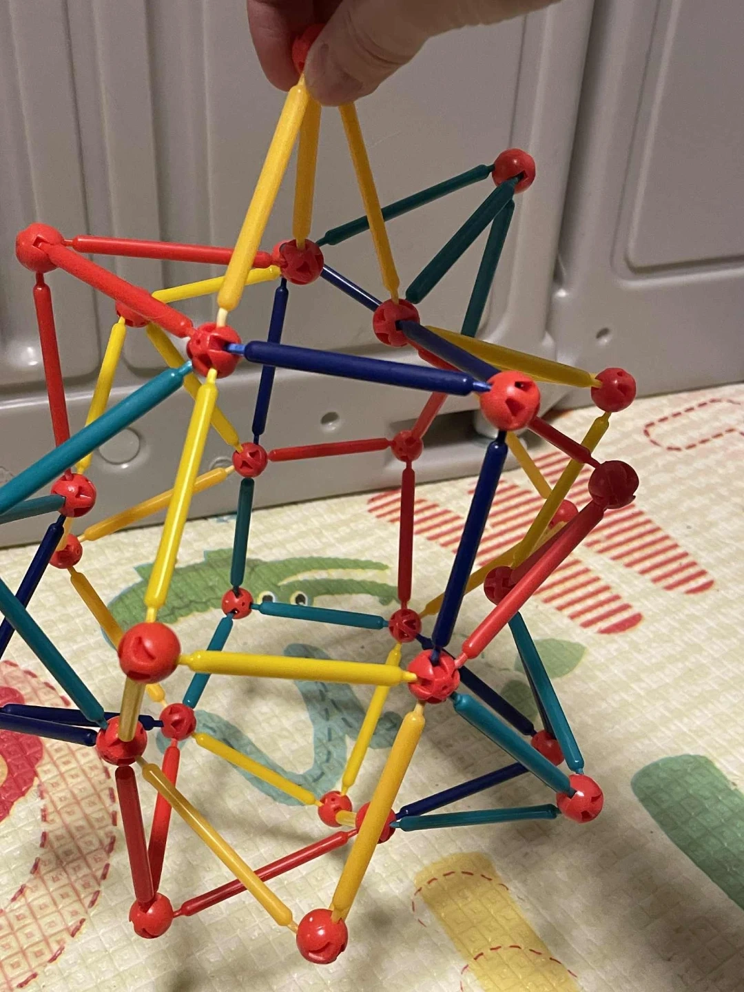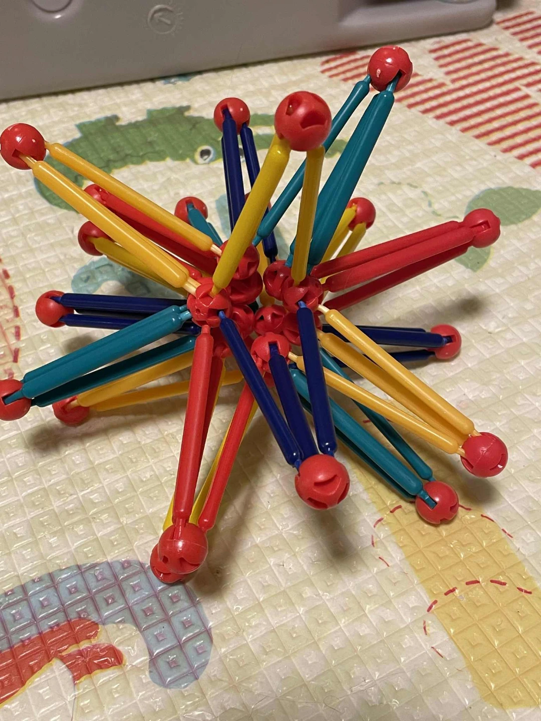 Selling a fun and colourful geometric plastic toy! It's in great condition and perfect for kids who love building and creating. The toy features red connectors and yellow, blue, and teal rods.