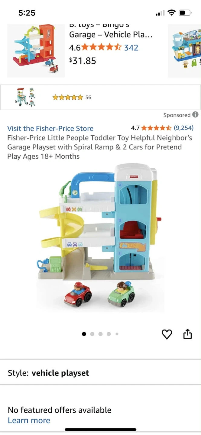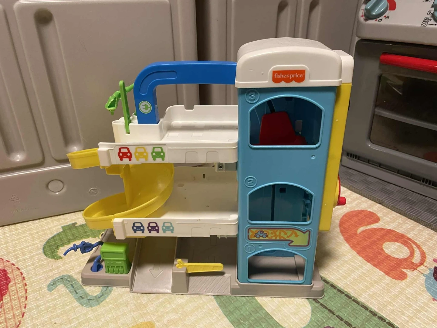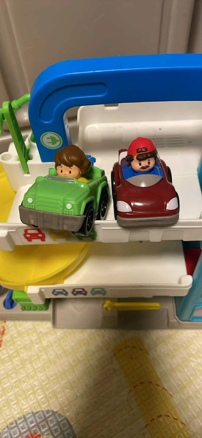 Selling a Fisher-Price Little People Toddler Toy Helpful Neighbor's Garage Playset with Spiral Ramp and 2 Cars! Recommended for ages 18+ months