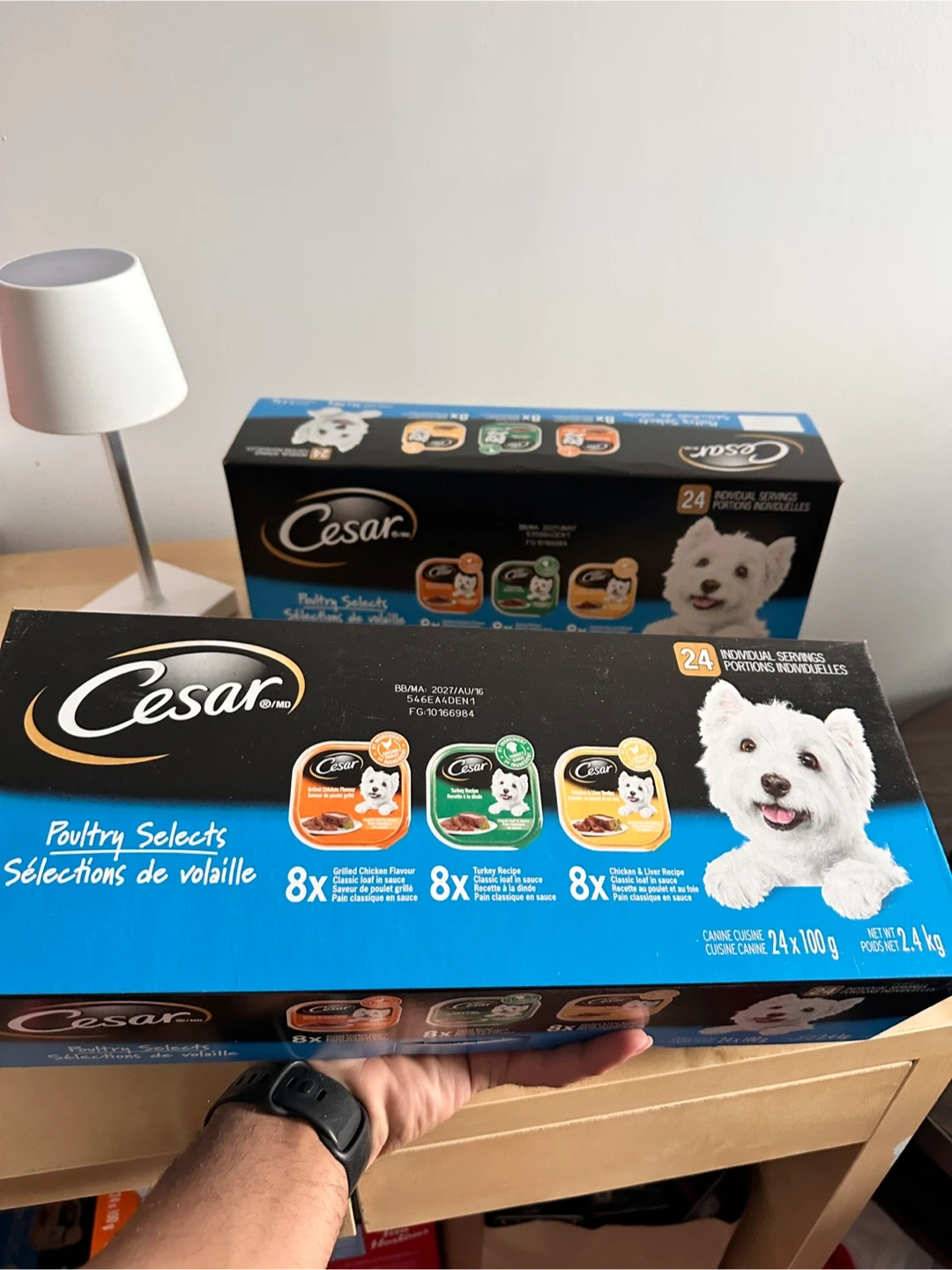 Selling a box of Cesar Poultry Selects dog food! It's a variety pack with Grilled Chicken, Turkey, and Chicken & Liver recipes. Each box contains 24 individual servings (24 x 100g). Expiry Date: 2027 August 16 Each box for $25
