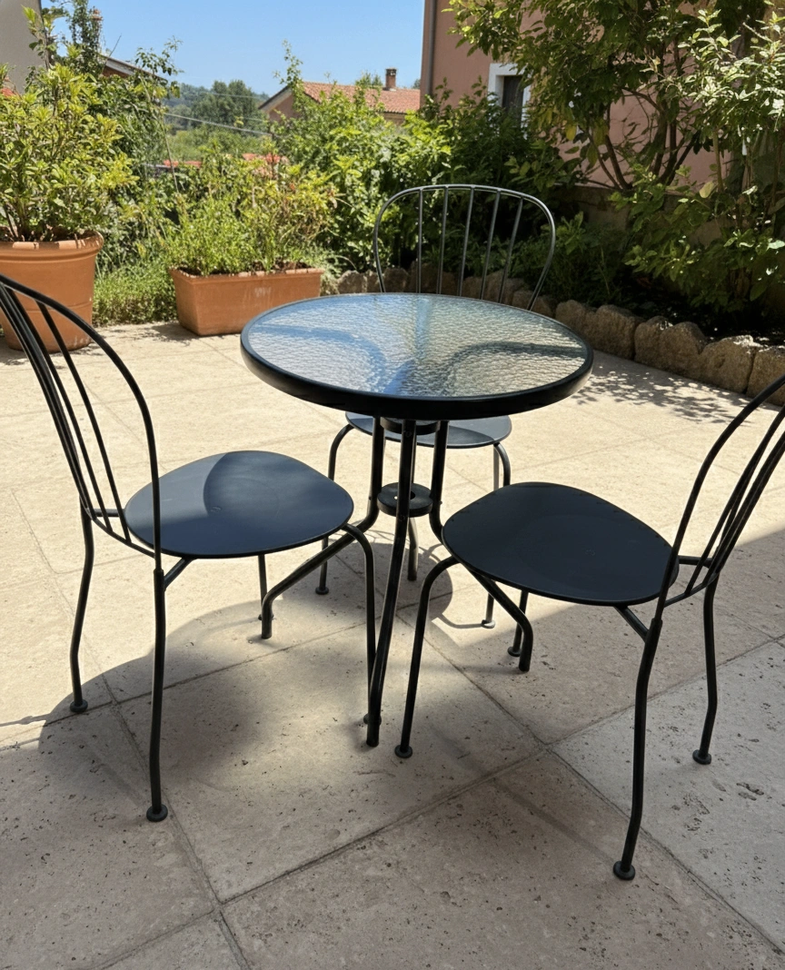 - 3 x black metal chairs (a bit more used but still in great condition)