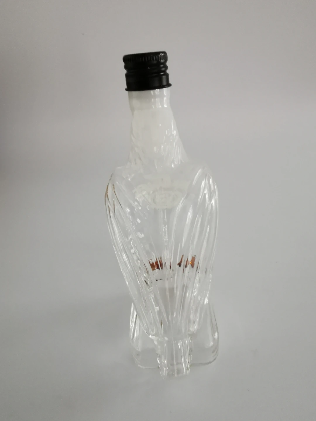 Add a unique touch to your collection with this Jack Daniels Bird Bottle! This novelty bottle, shaped like an eagle, stands approximately 5 inches tall and is in good condition. This is a new bottle and is empty.