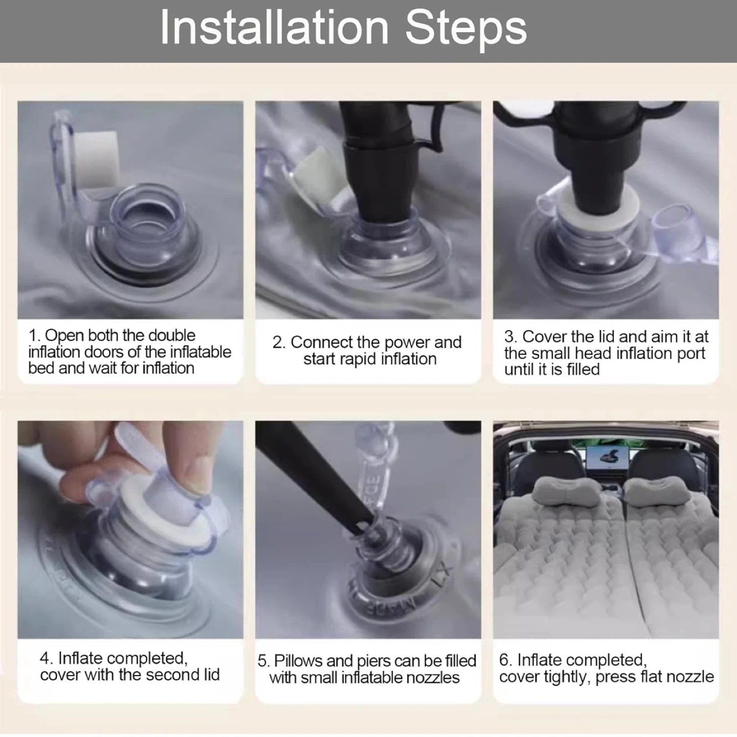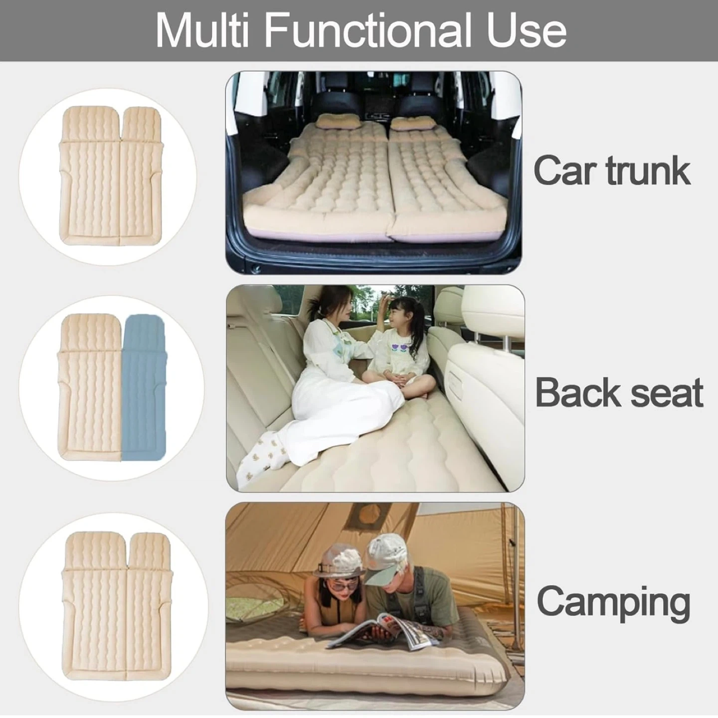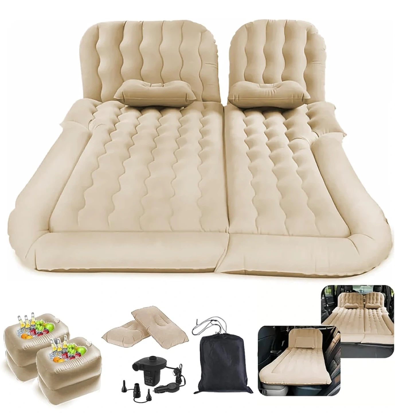 SUV Air Mattress,Camping Car Mattress/Car Bed with Electric Pump and 2 Pillows,Car Camping Accessories,Car Sleeping Bed for Home (Black) (Beige)