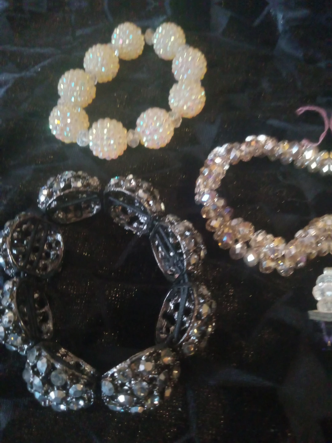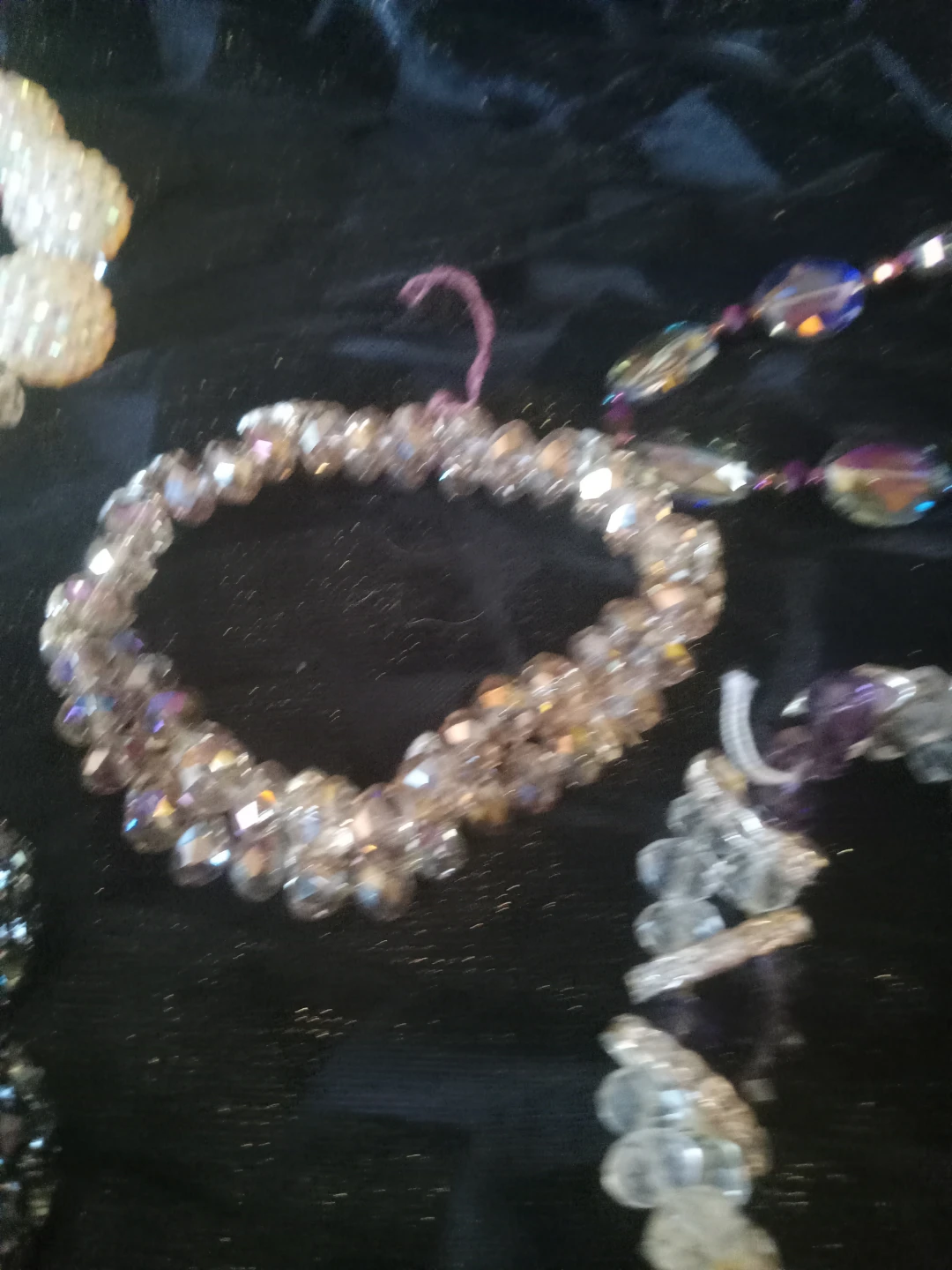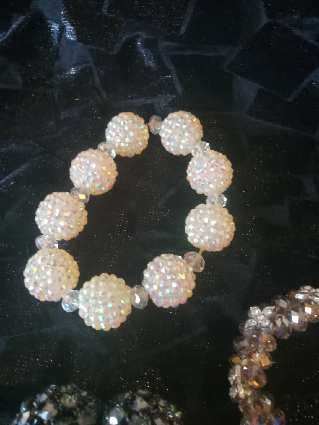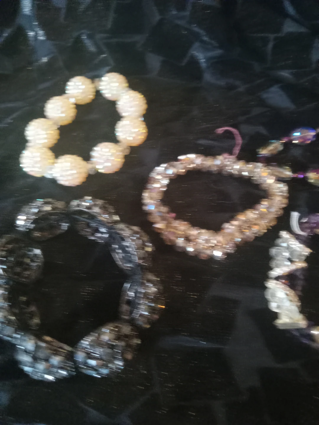 Here's a collection of assorted crystal bead bracelets! They're in great condition and ready to add some sparkle to your outfit. Perfect for stacking or wearing alone