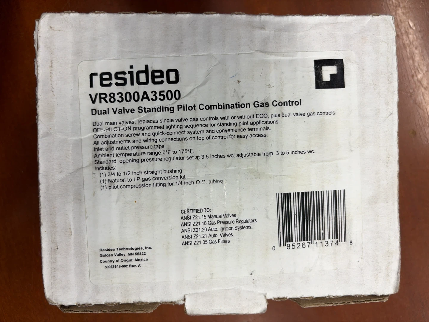 Resideo VR8300A3500 Dual Valve Gas Control