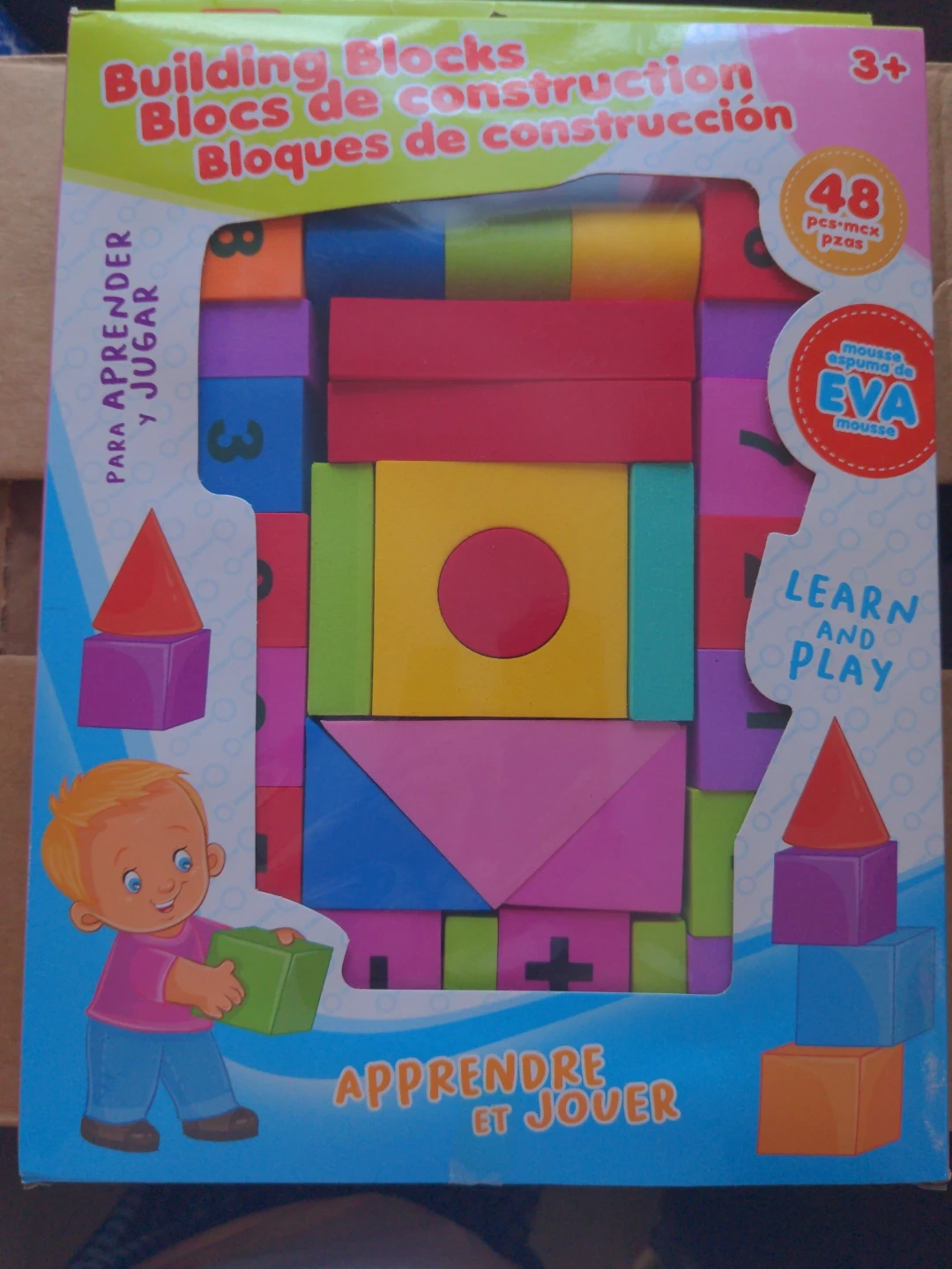 Building blocks set with 48 pieces, perfect for kids aged 3 and up! These blocks are made of EVA foam, making them soft and safe for little ones to learn and play with