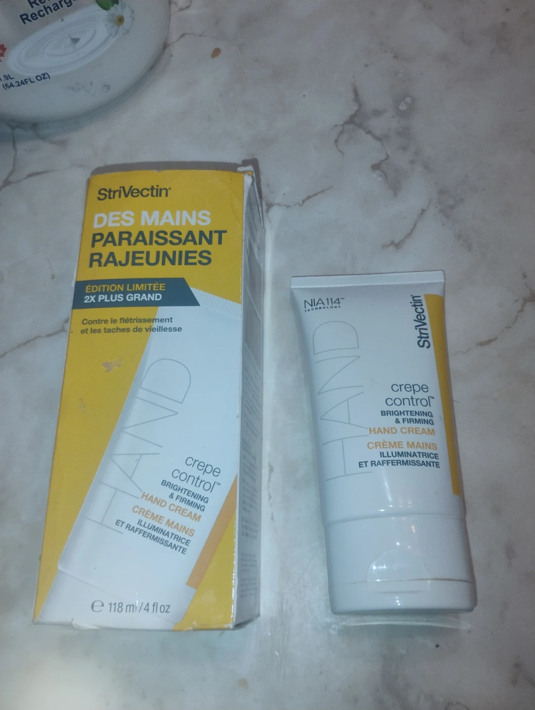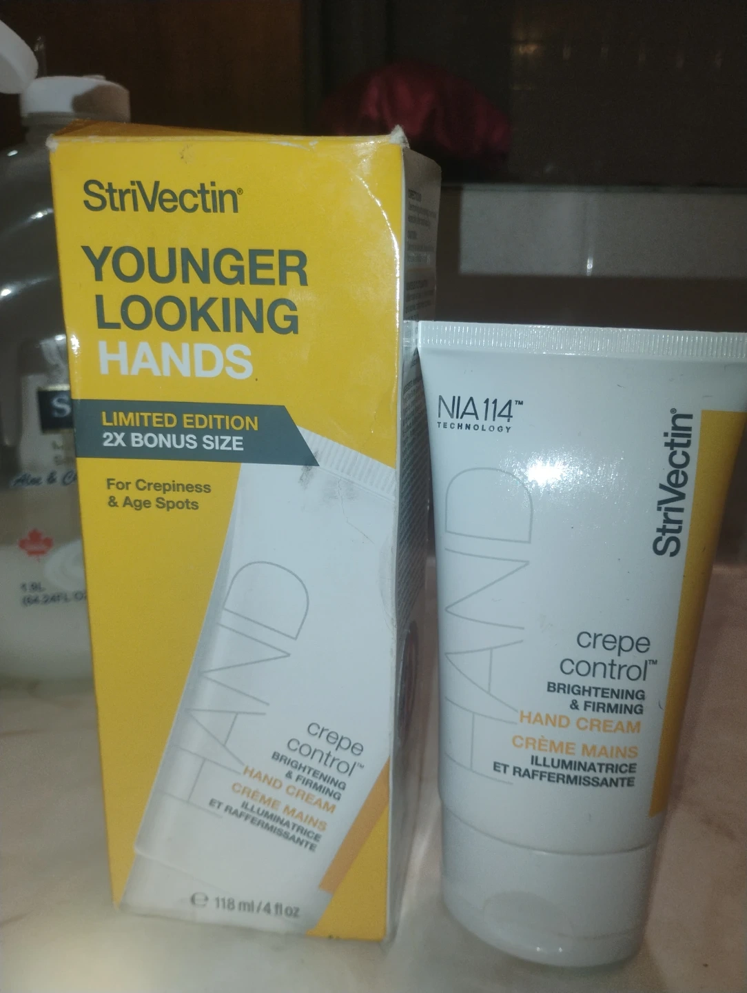 I'm selling a tube of Strivectin Crepe Control Brightening & Firming Hand Cream. It's a limited edition 2X bonus size, 118ml/4 fl oz. It helps with crepiness and age spots. Comes with the original box!