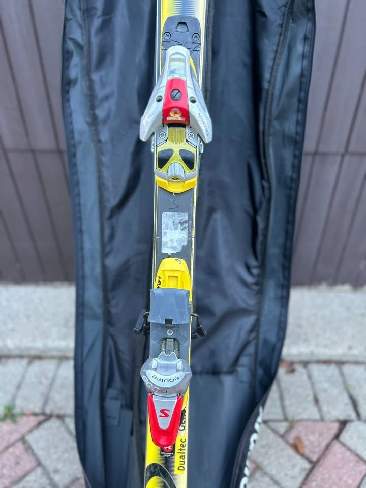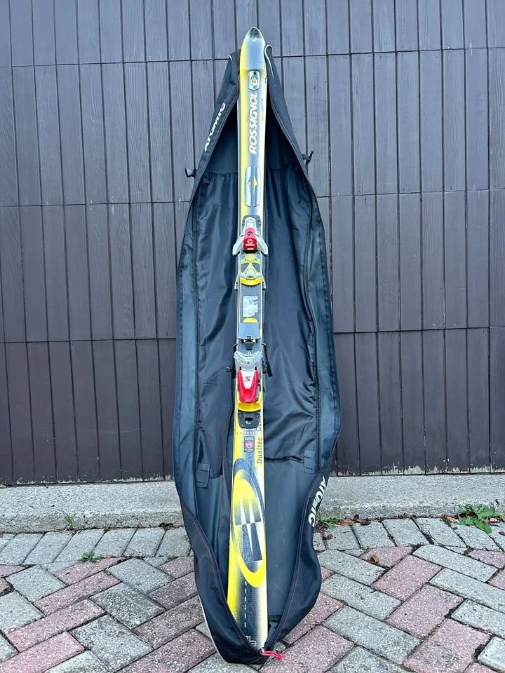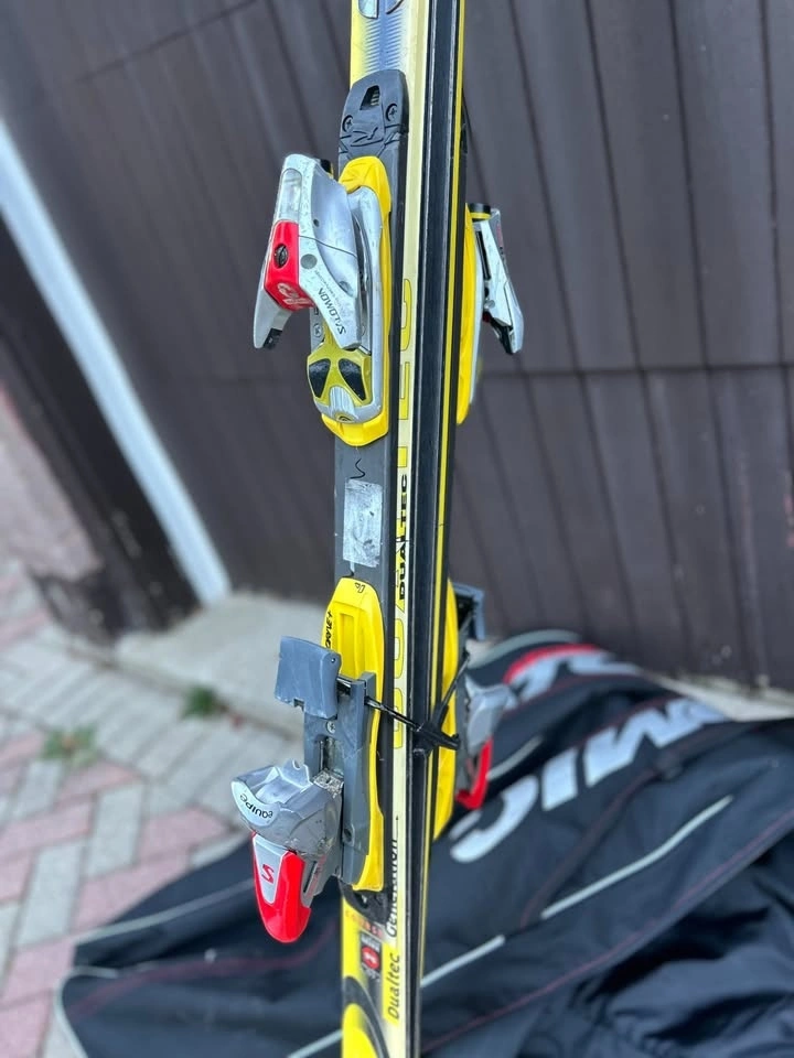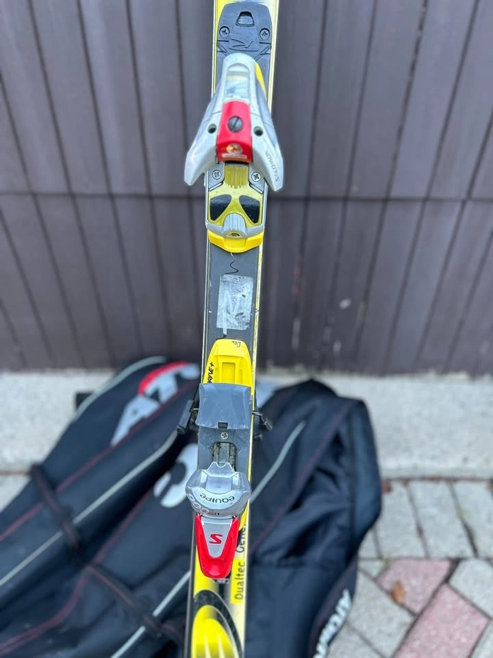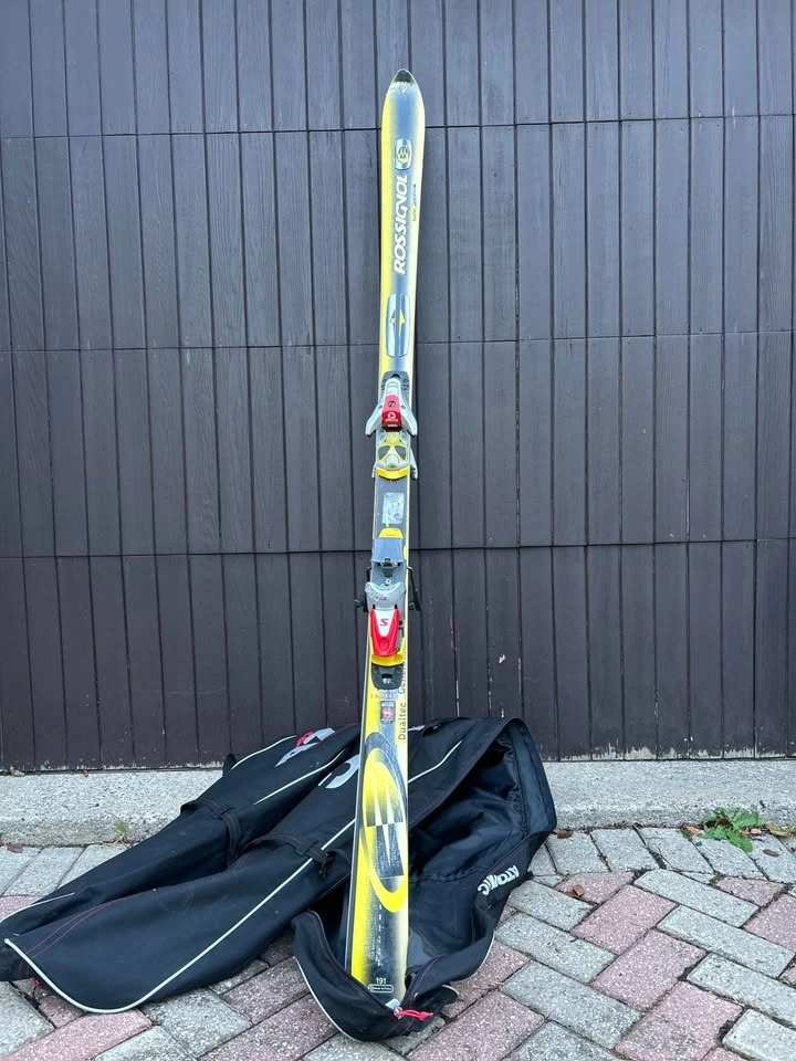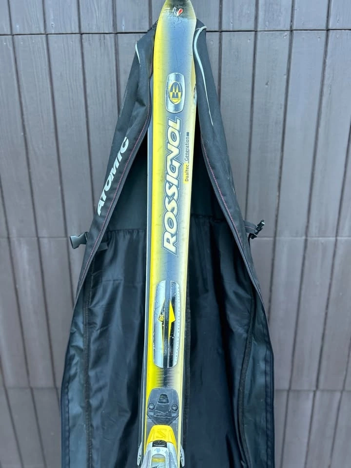 Selling my older Rossignol Dualtec 191cm skis with Salomon bindings + Atomic padded ski bag.