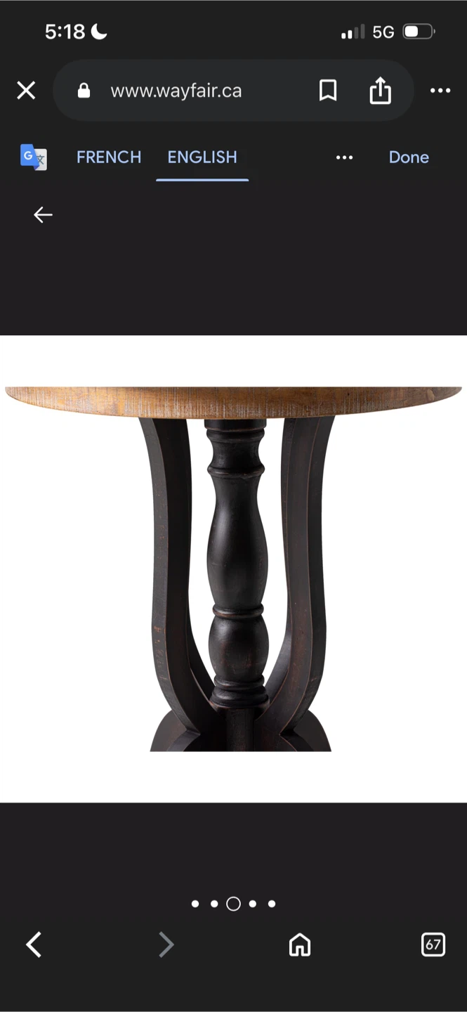 Selling a lovely round accent table from Wayfair! It's in great shape and would look perfect in a living room or bedroom. The table has a 24-inch diameter top and stands 29 inches tall. It features a stylish stepped top design and a sleek base with unique curved legs. The distressed finish adds warmth and a contemporary touch to any space