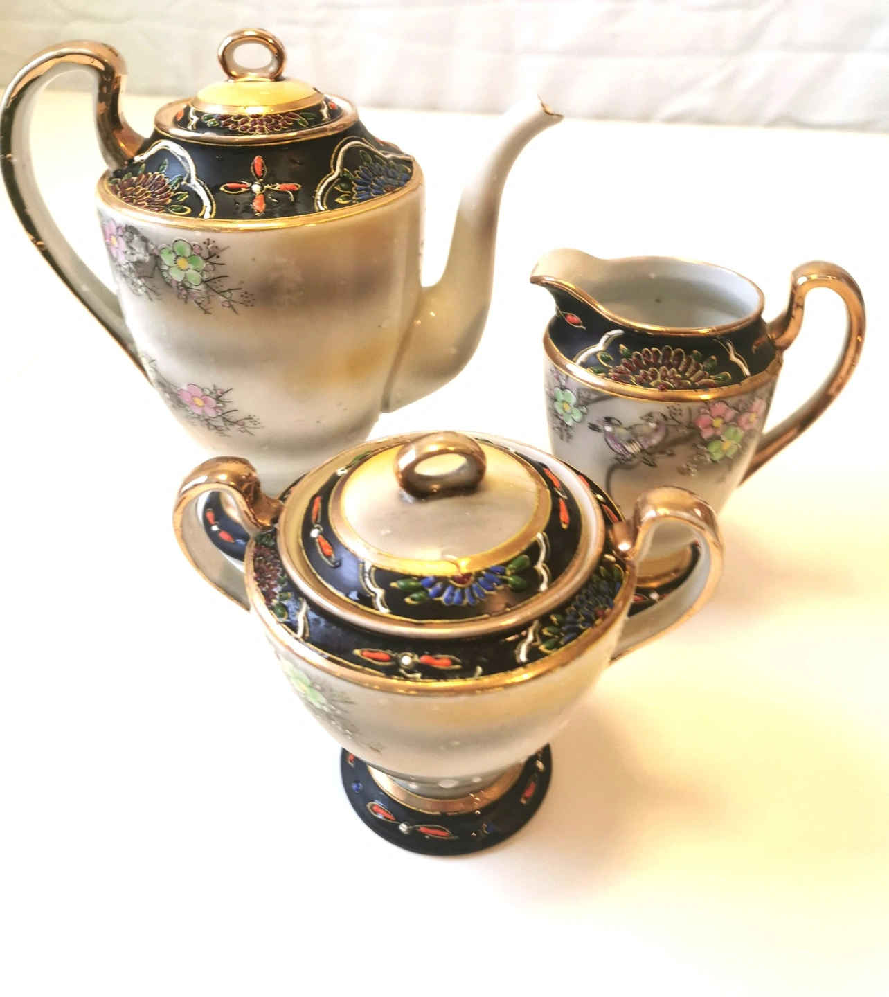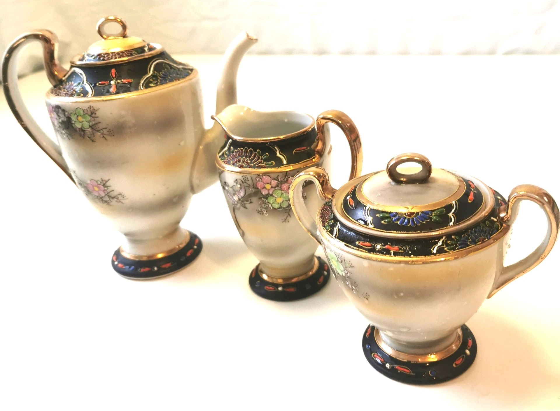 50s Mikori Japan Tea Set Hand Painted Sugar Creamer Tea Pot