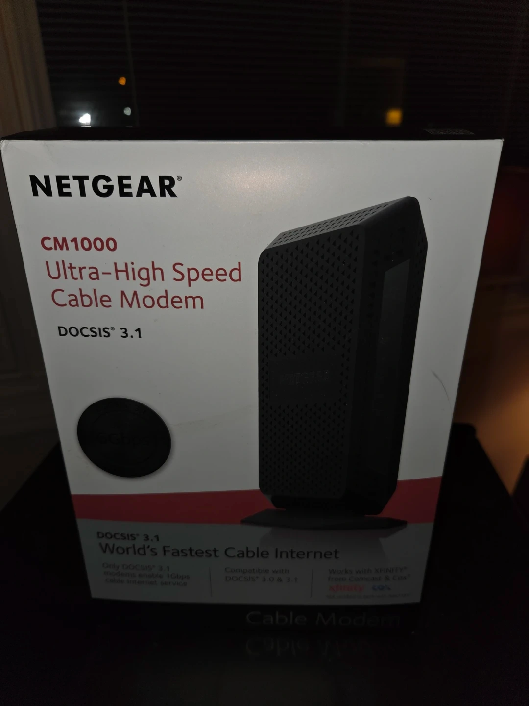 Selling a NETGEAR CM1000 Ultra-High Speed Cable Modem. This DOCSIS 3.1 modem is compatible with DOCSIS 3.0 & 3.1 and works with XFINITY from Comcast & Cox. Get the world's fastest cable internet with this modem!
