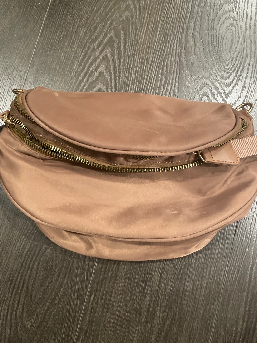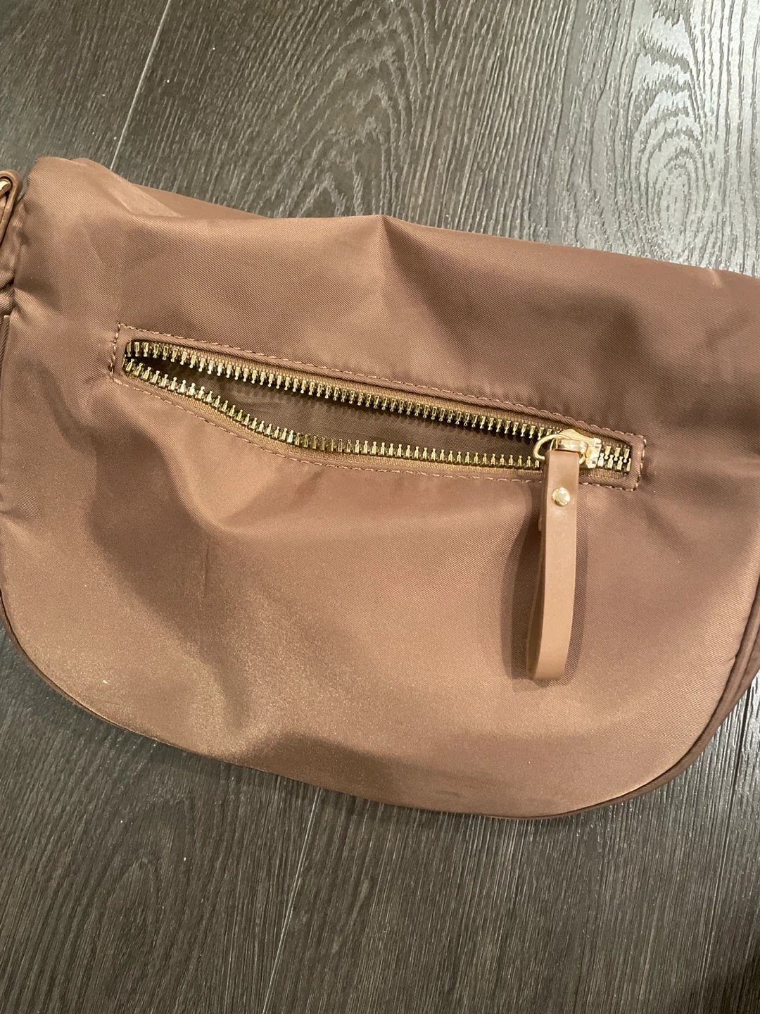 Selling a cute brown crossbody bag! It's in great condition and perfect for everyday use. It features gold zippers and an adjustable strap.