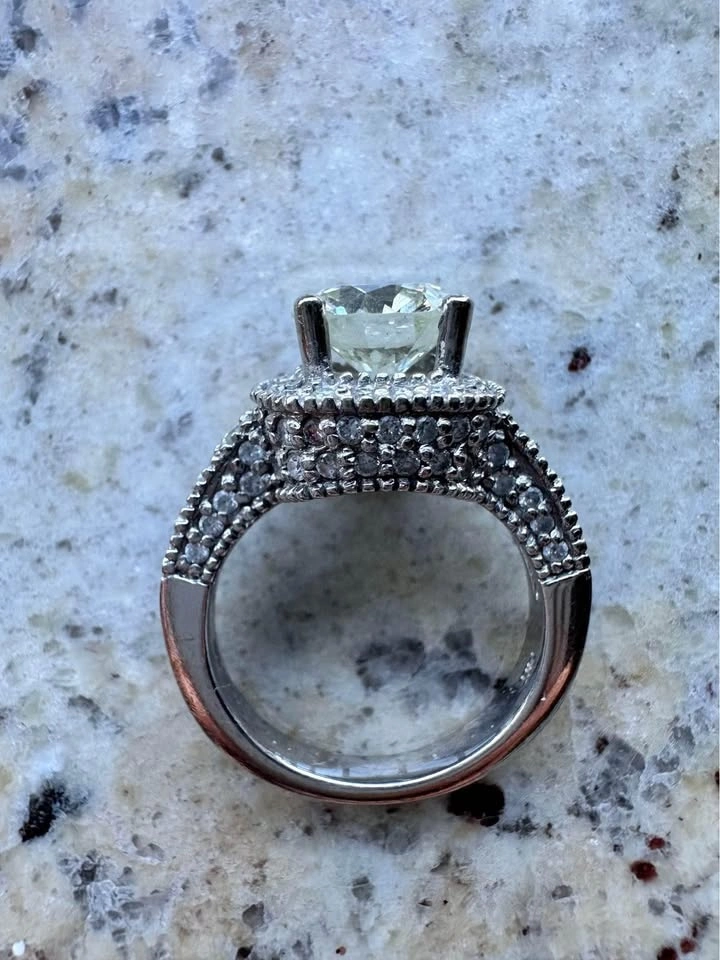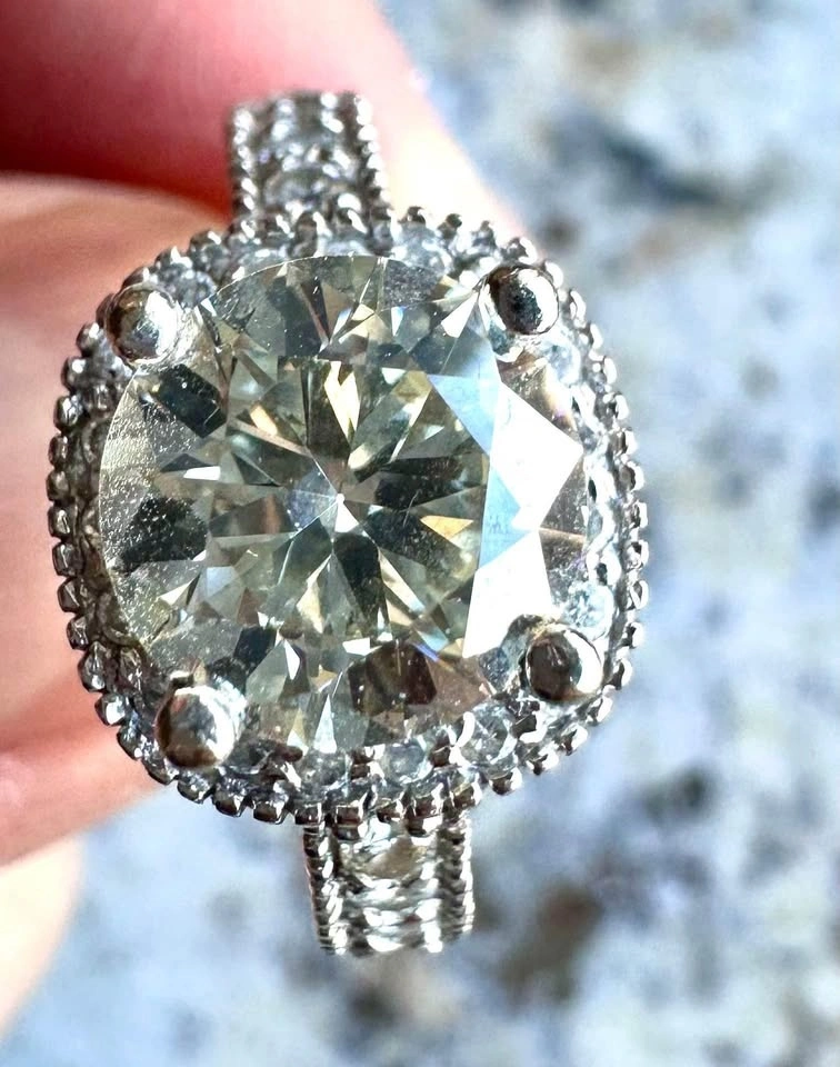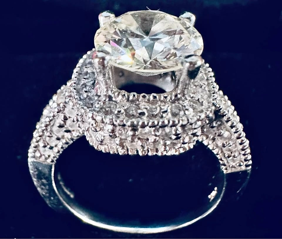 Main stone: 2.33 carat natural round cut J-K color VS2 clarity (not lab grown)