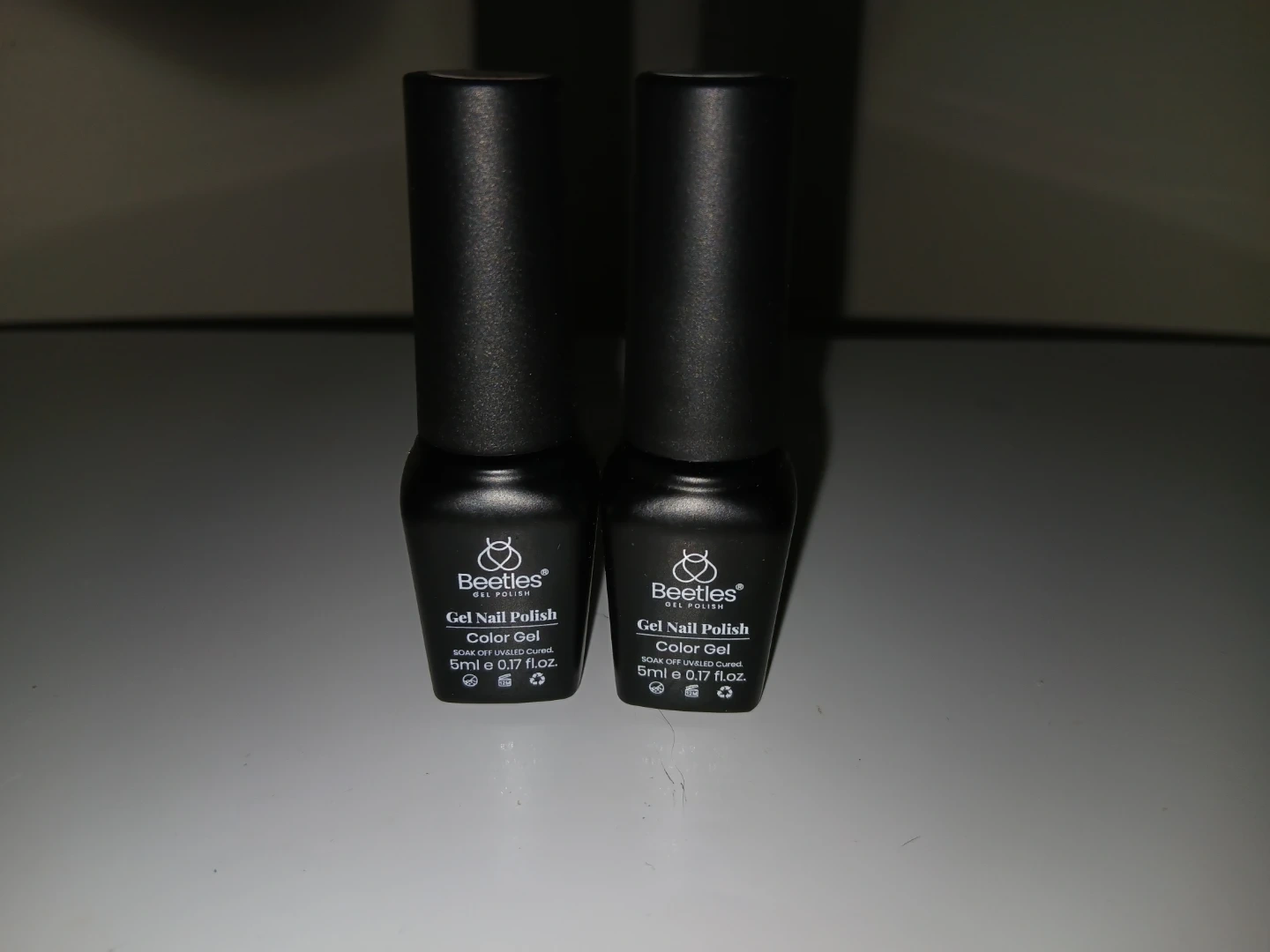 - Two bottles of Beetles Gel Nail Polish, colours b463 and b466 (5ml / 0.17 fl oz.)
