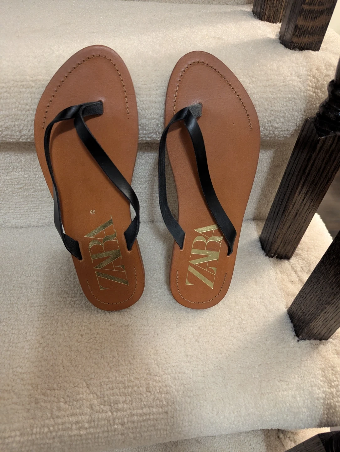 Zara Brown NEW Flip Flops - Size 35